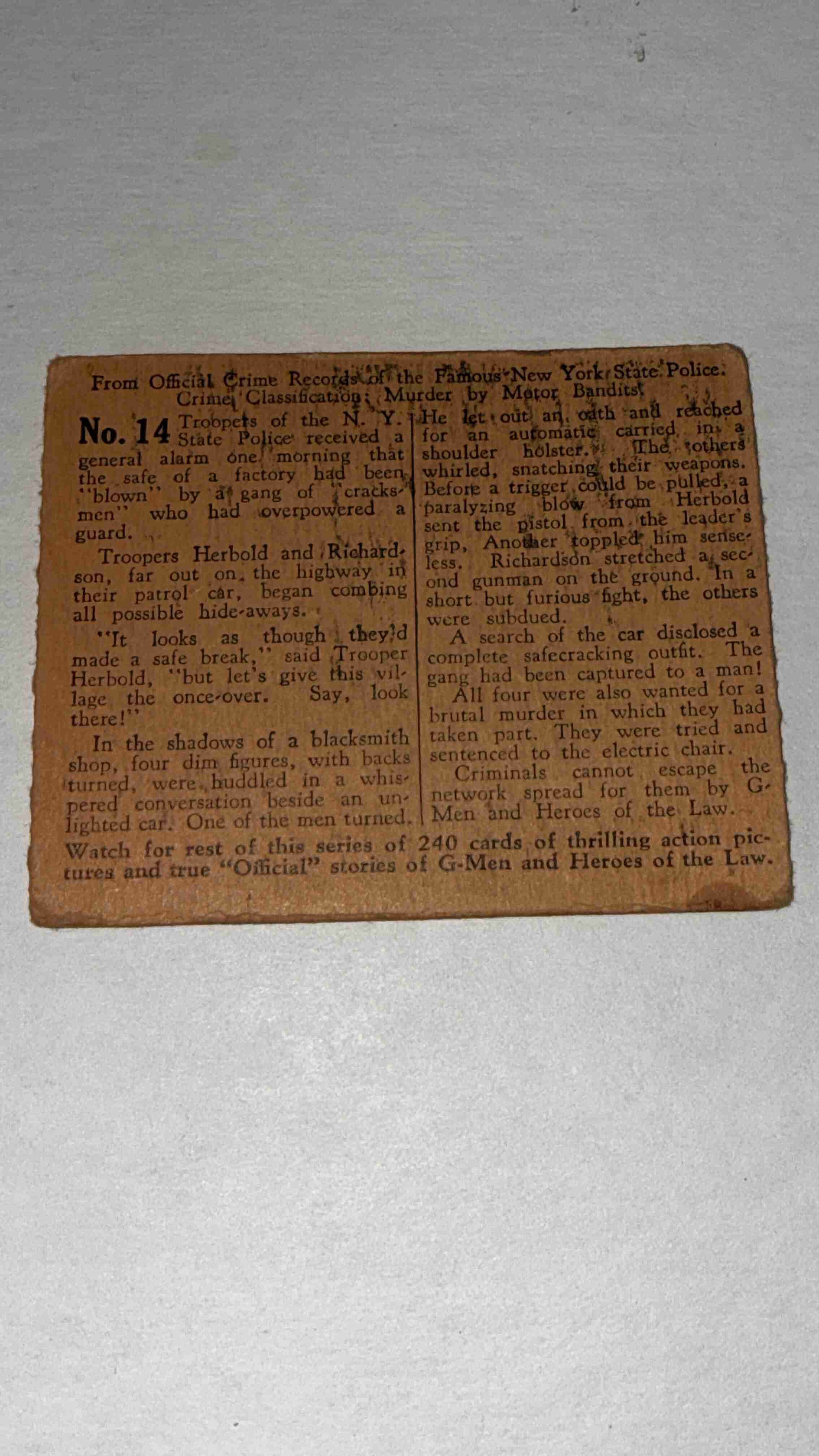 1936 Gum G-Men & Heroes of the Law #14 Foiling Four Wanted