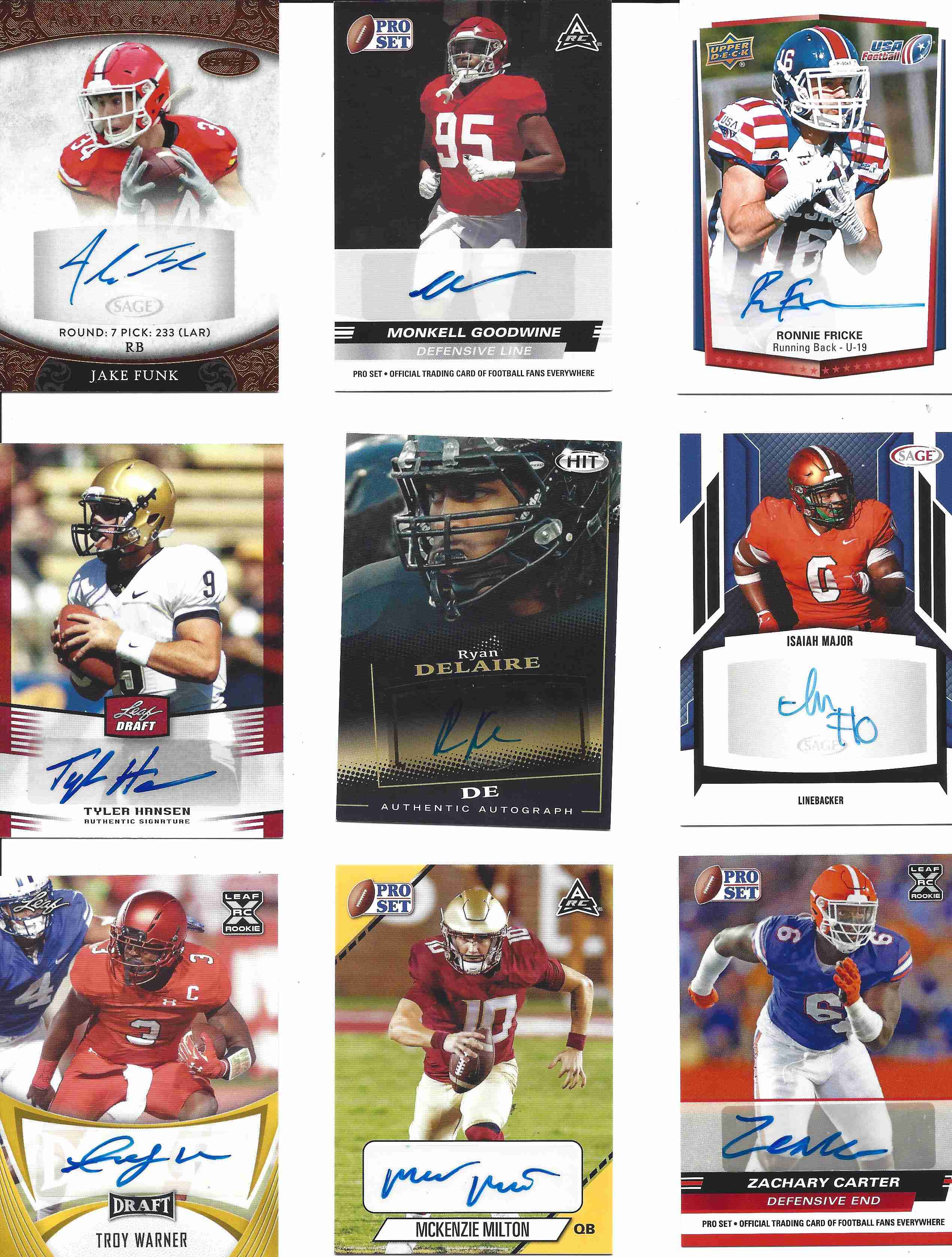 9 card lot of NFL autograph rookie cards. Cards are in NM condition.