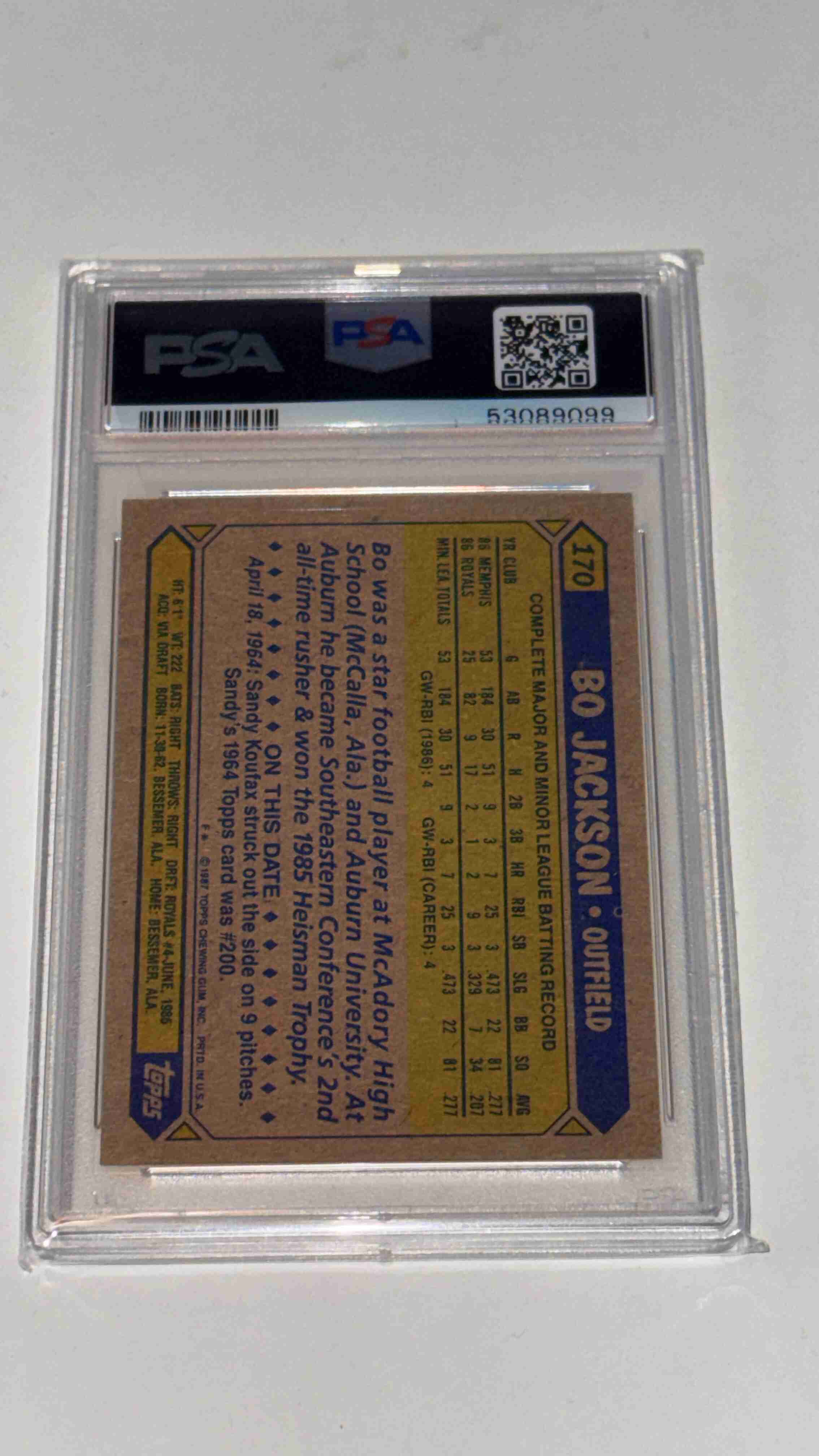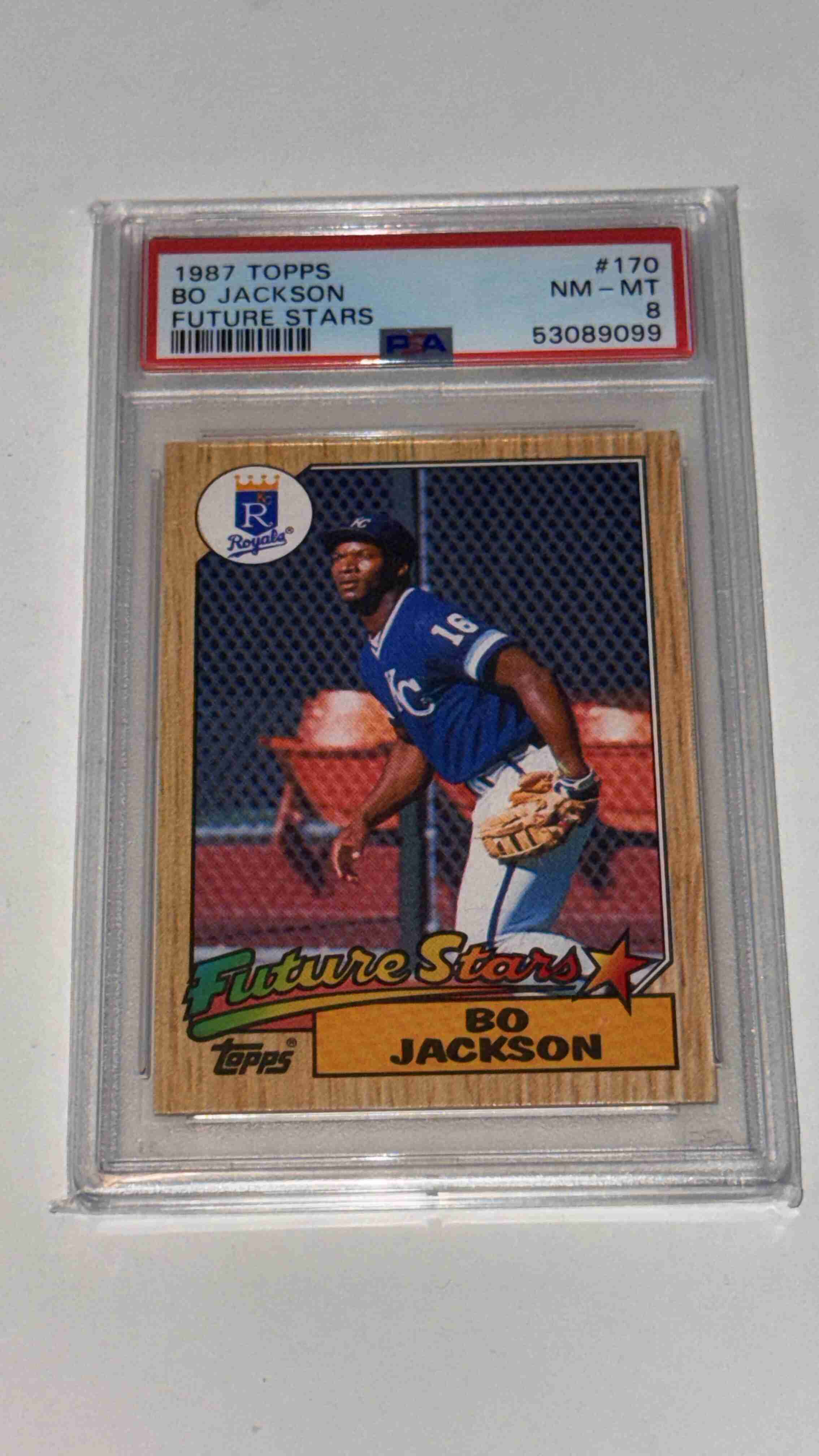 1987 TOPPS FUTURE STARS #170 BO JACKSON RC ROYALS PSA 8