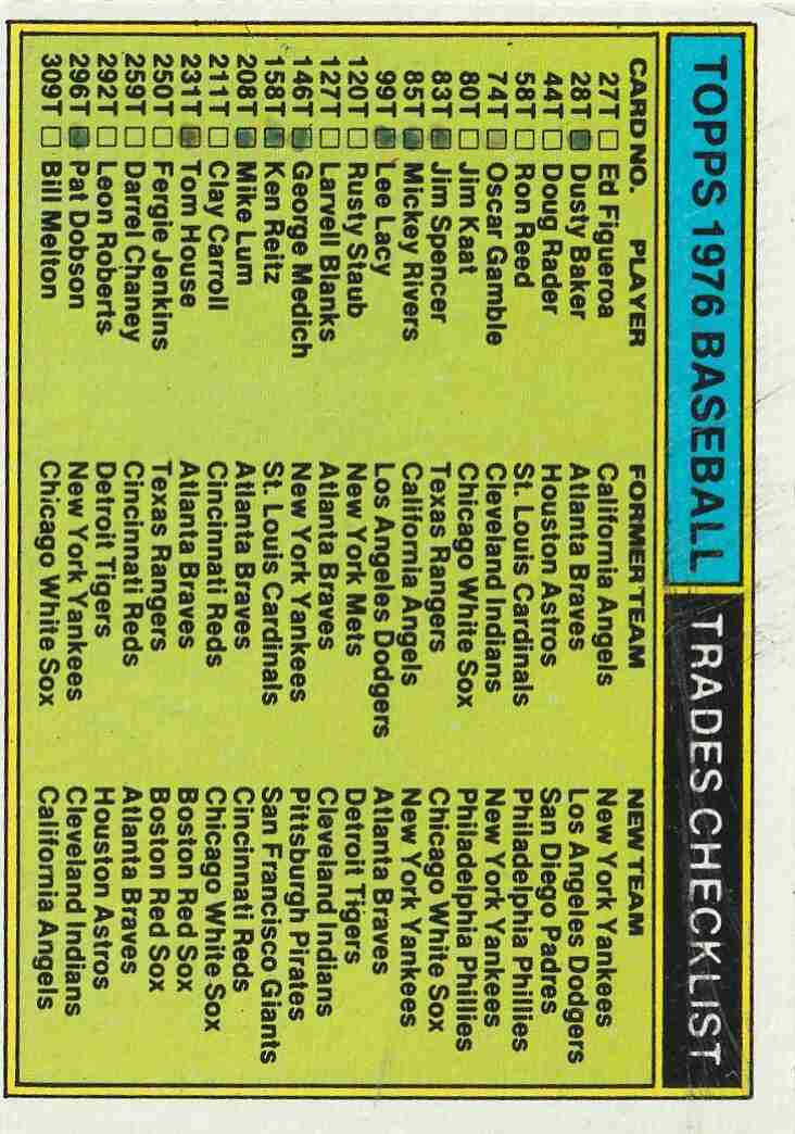 1976 Checklists #'s 119 262 392 526 643 (NM/M) Front & Back like new 1976 Trades Checklist (EX+/Better) has neat checkmarks