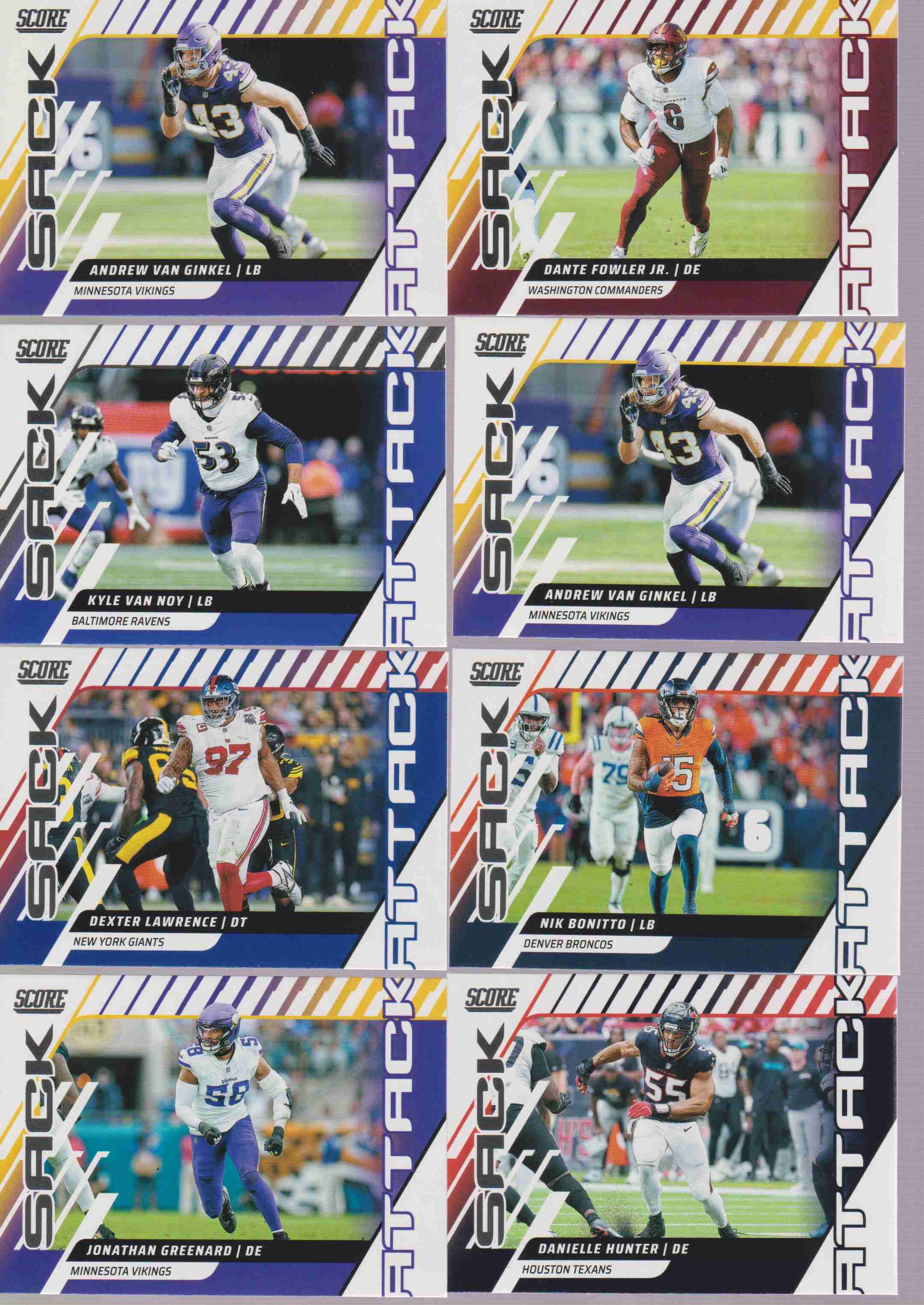 2025 Score Sack Attack Insert Lot Of 8