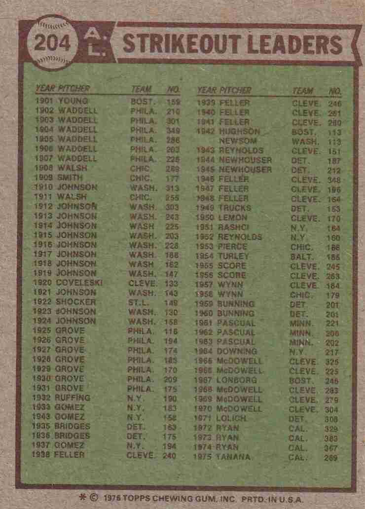 1976 Topps #204 '75 AL SO Leaders