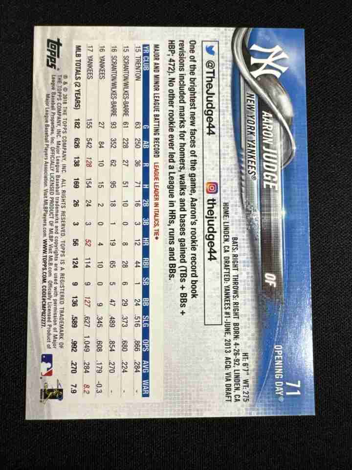 2018 Topps Opening Day Gold Cup #71 Aaron Judge Yankees