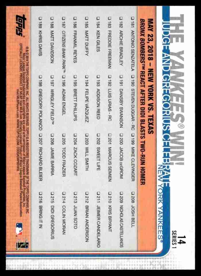 2019 Topps The Yankees Win! Aaron Judge/Didi Gregorius #14