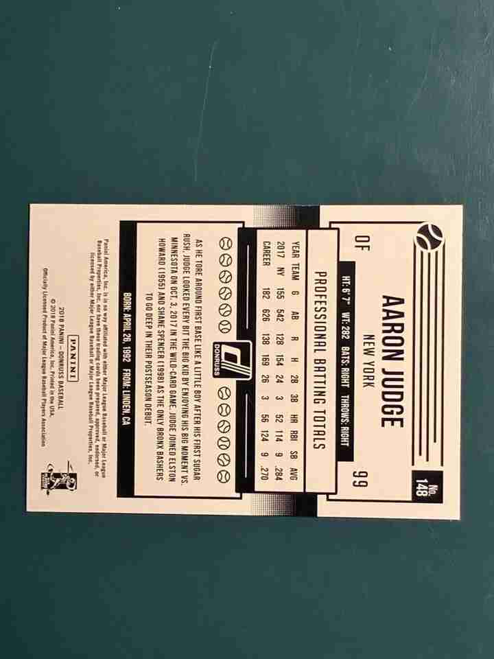 18 Panini Donruss Aaron Judge #148 NY 12th Judicial Distric