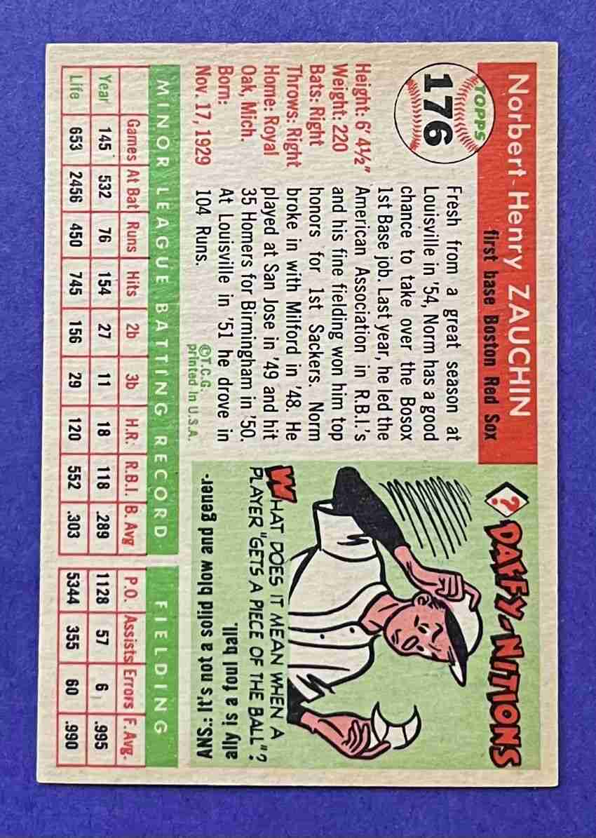 55 Topps NORM ZAUCHIN RC Hi #176 +++