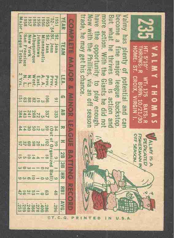 1959 TOPPS VALMY THOMAS (WHITE BACK) #235 - HIGH GRADE
