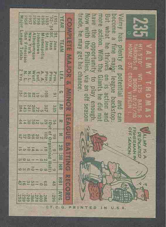 1959 TOPPS VALMY THOMAS (GREY BACK) #235 - HIGH GRADE