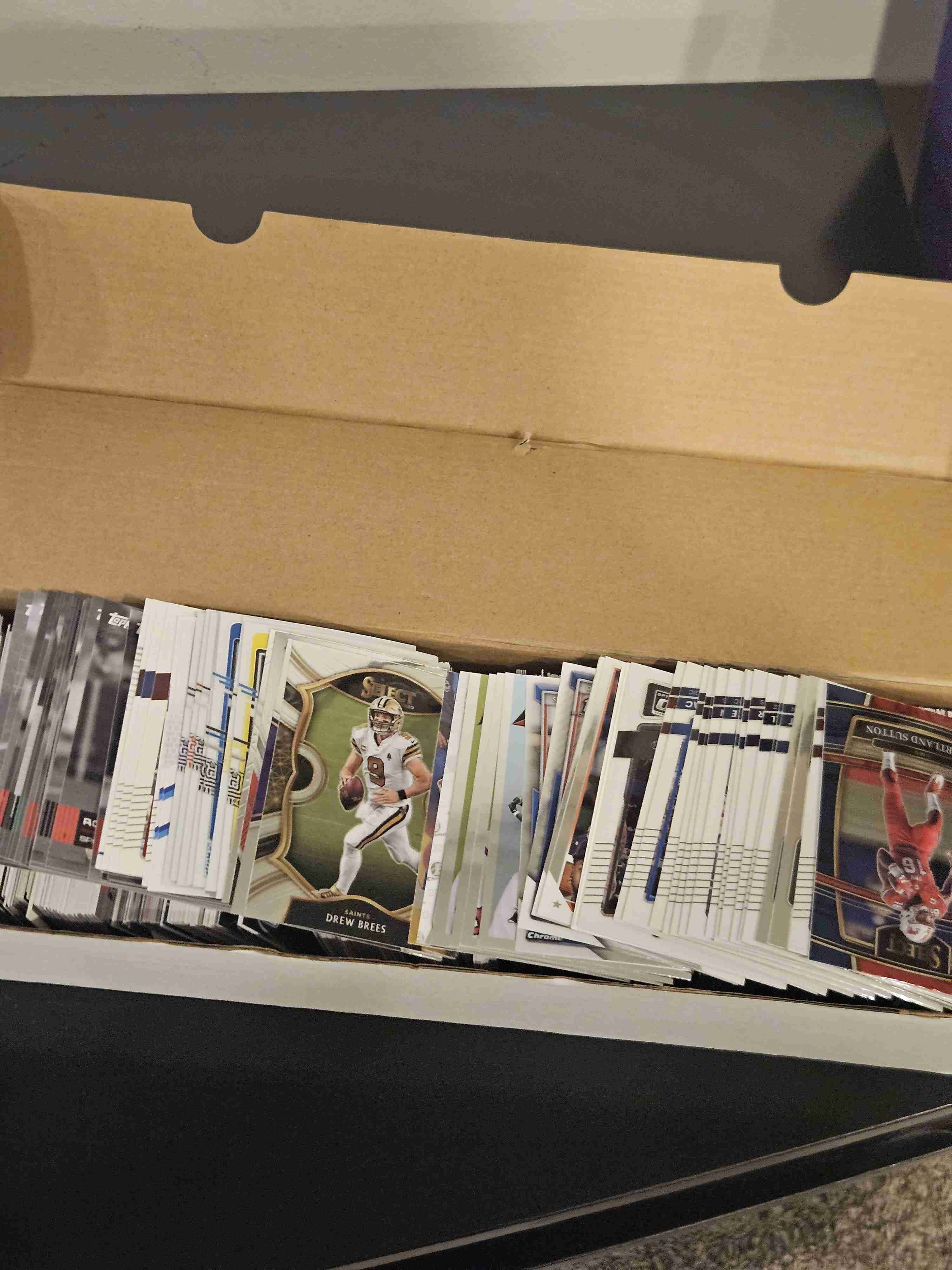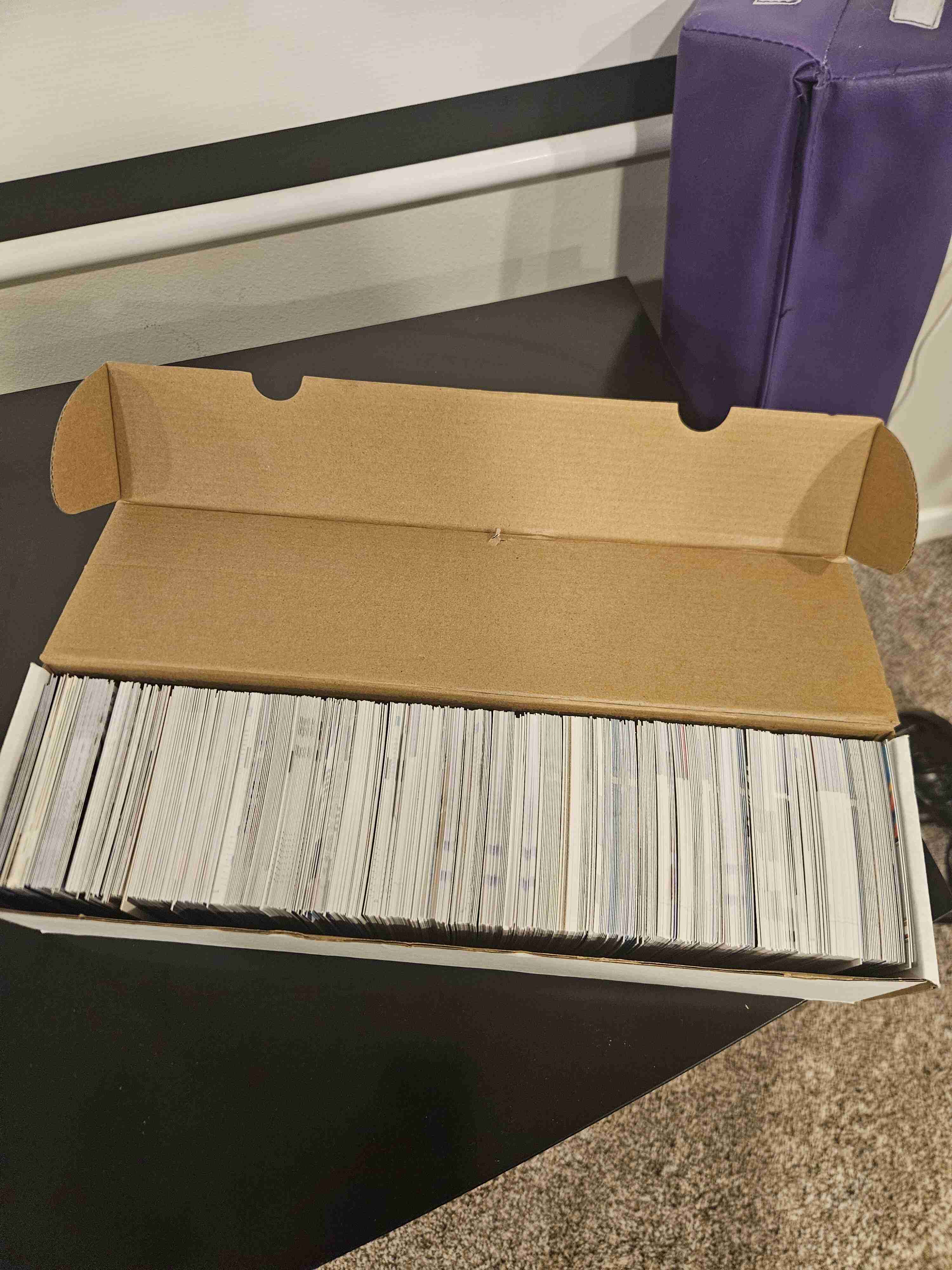 800 count box of misc sport and year cards. Not sure how many cards exactly but it fills the box. See picture 1.