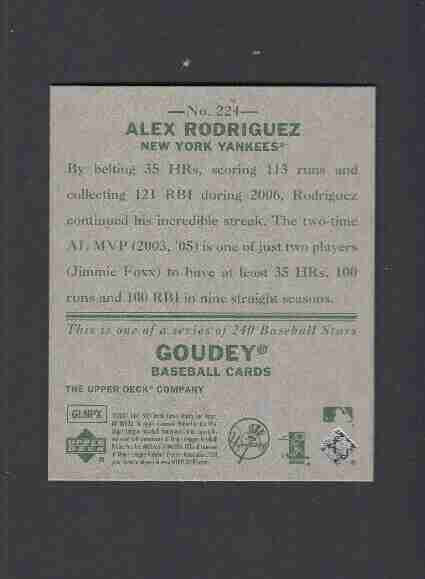 Alex Rodriguez 07 Upper Deck Goudey Green Back #224