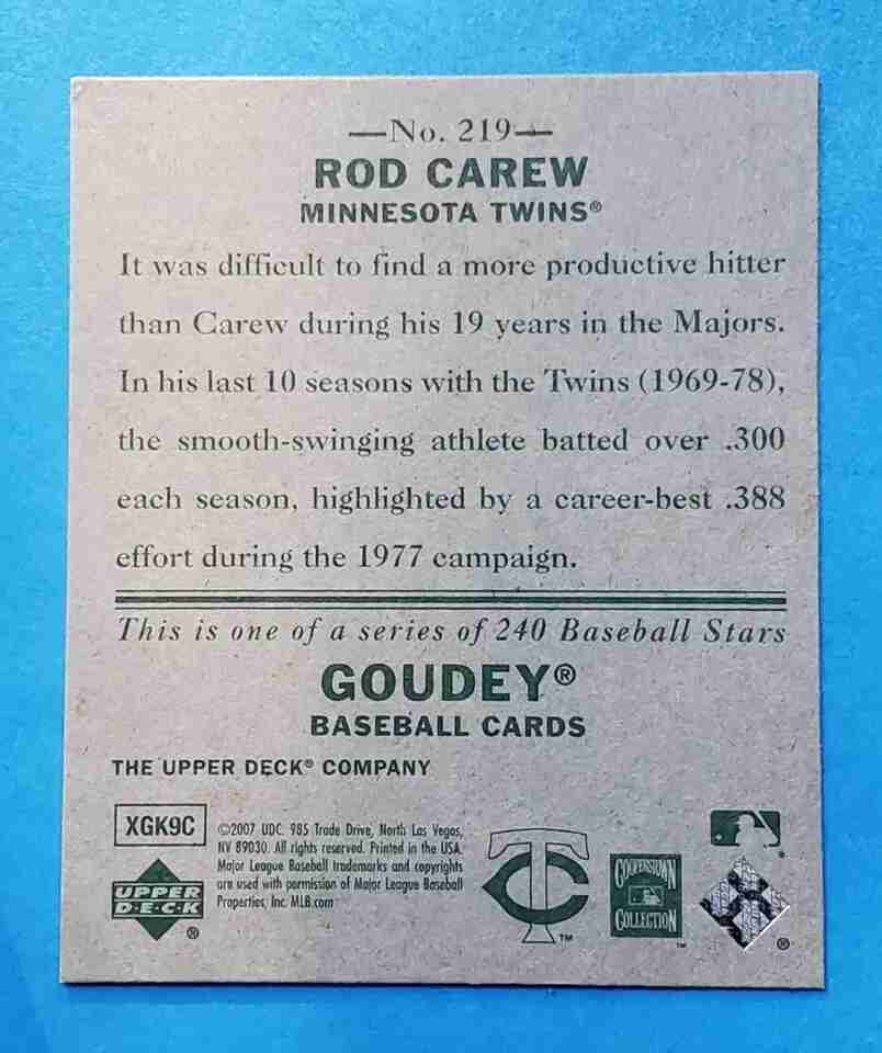 ROD CAREW 2007 Upper Deck Goudey Mini Green Back SP #219