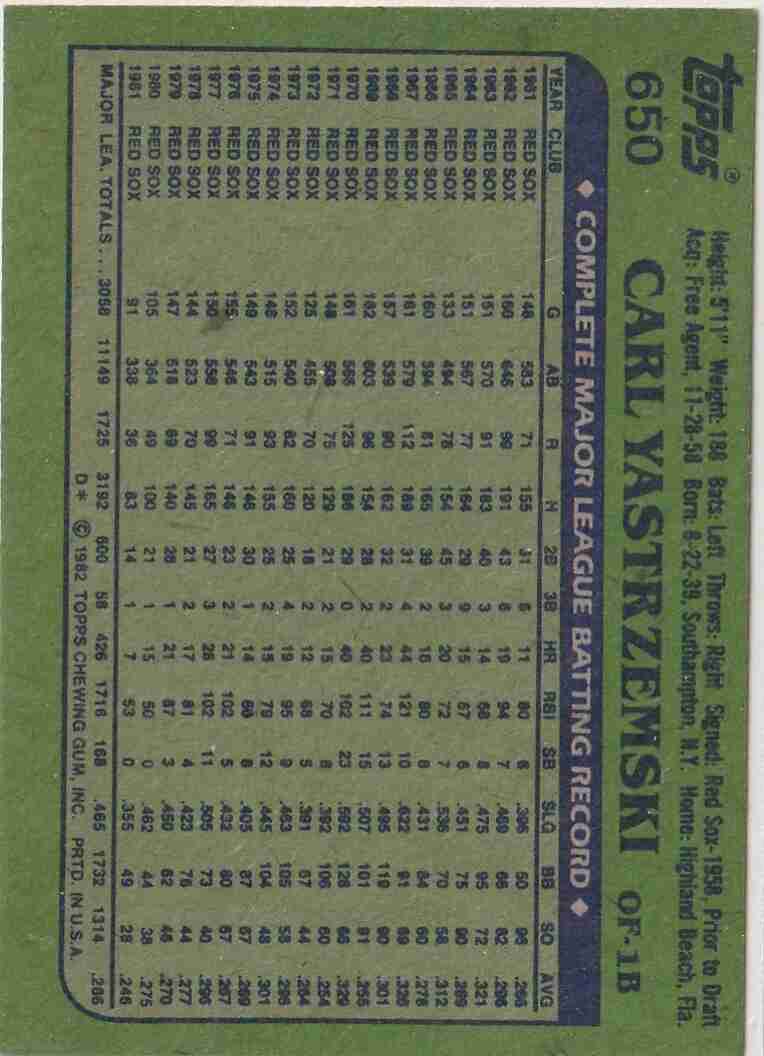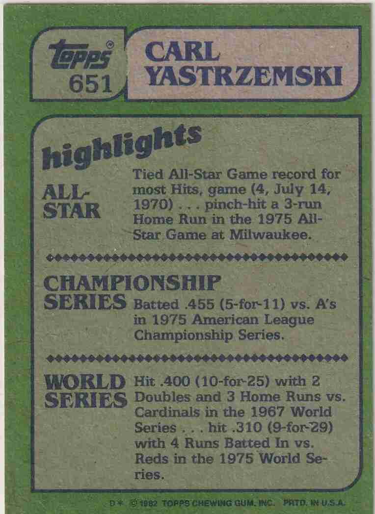 2-Topps 1982 Carl Yastrzemski #'s 650 651