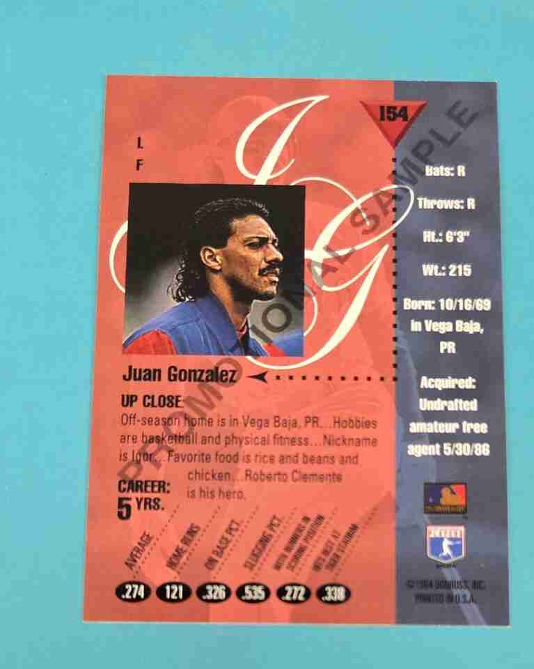 1994 Studio Promo SAMPLE #154 Juan Gonzalez Texas Rangers