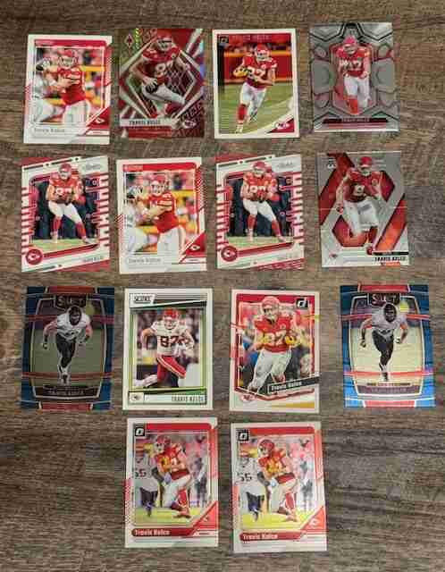 14-card TRAVIS KELCE Lot: Select, Optic, Mosaic, Fire burst