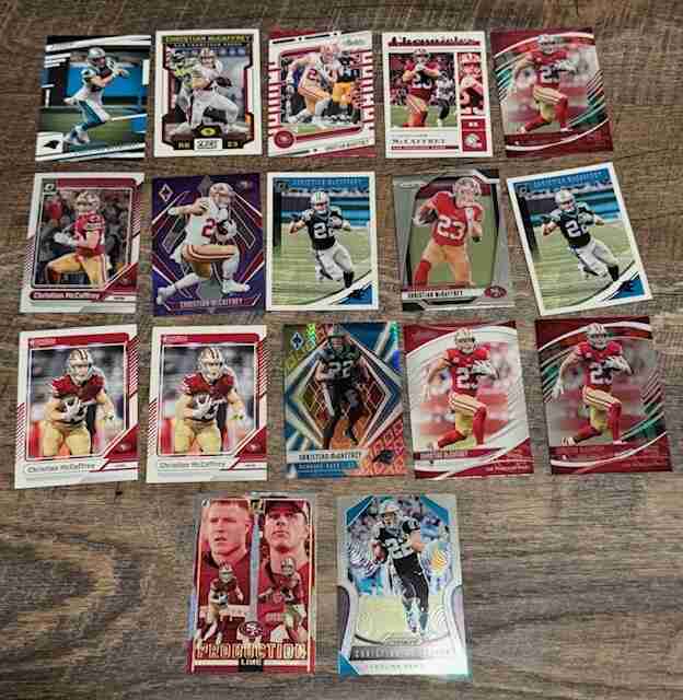 17-card CHRISTIAN McCAFFREY Lot: Insert, Parallel, Prizm