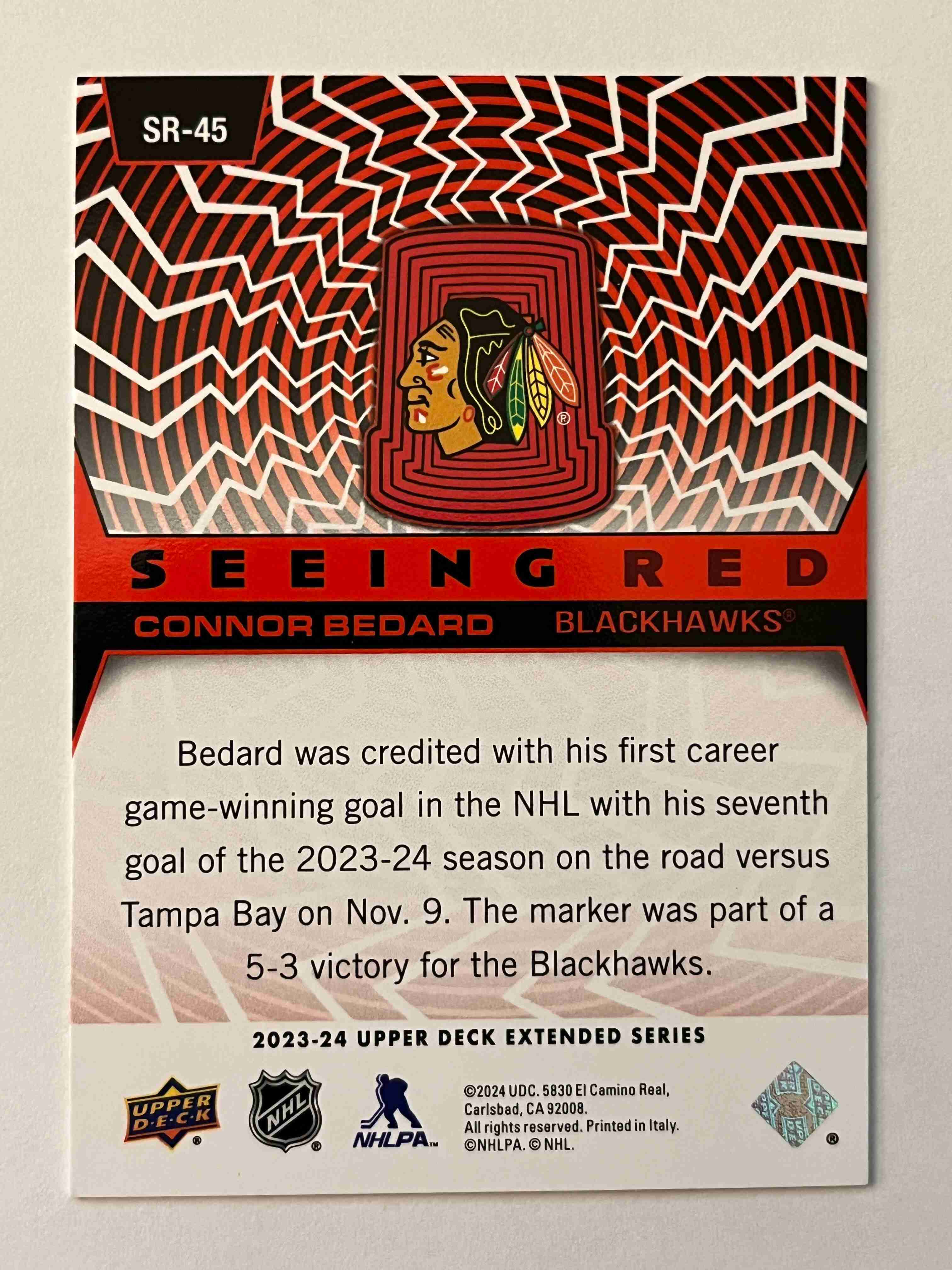 Connor Bedard 2023-24 UD Extended Seeing Red RC #SR-45
