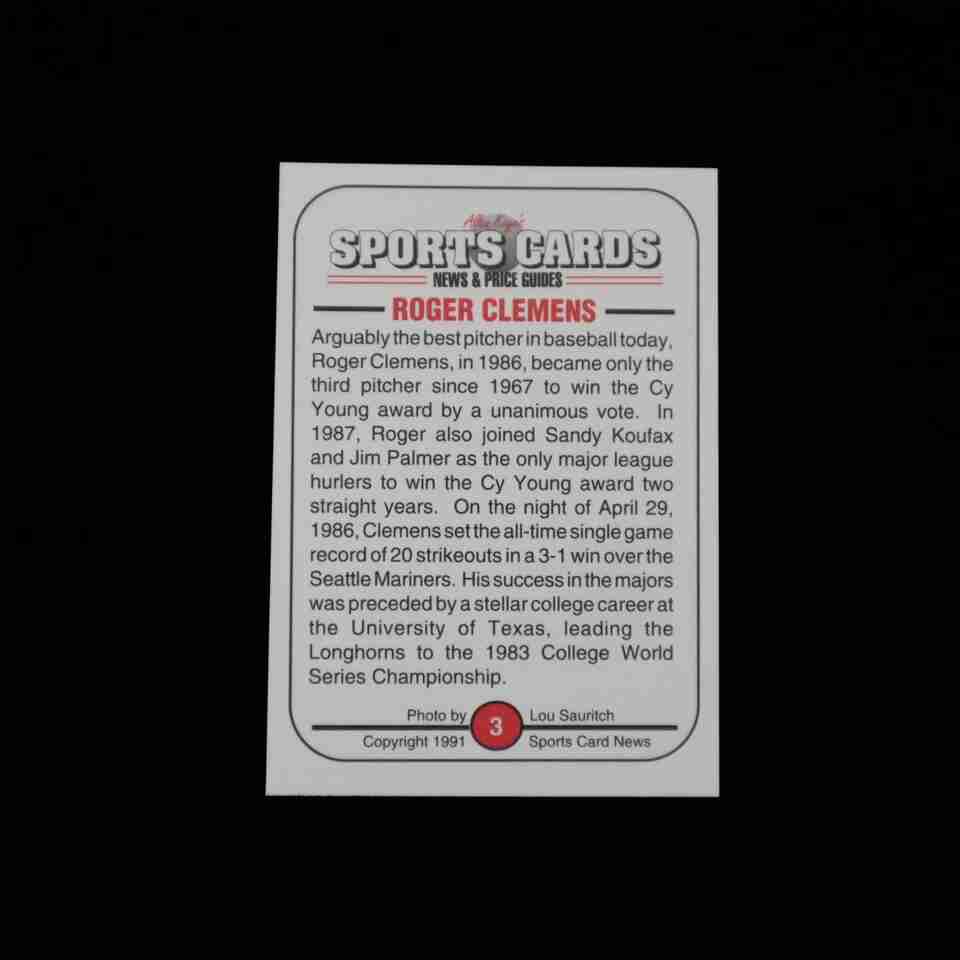 1991 Roger Clemens Boston Red Sox Allan Kaye's Sports Cards News #3