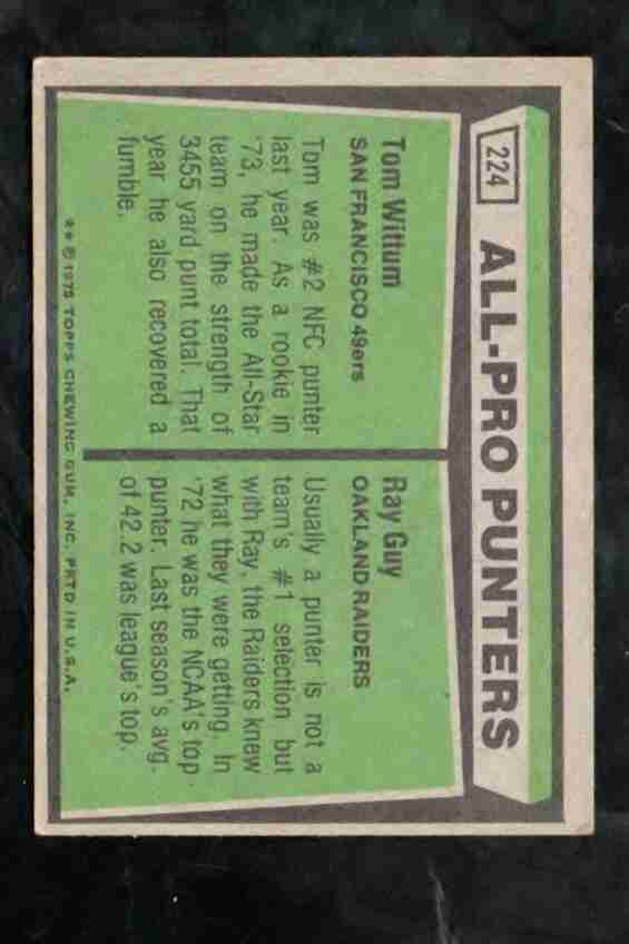 1975 Topps # 224 1974 All Pro Punters: Wittum & Ray Guy