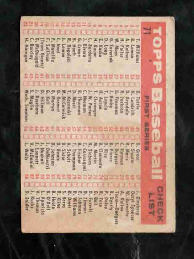 1957 Topps # 71 LOS ANGELES DODGERS TEAM