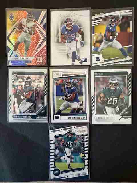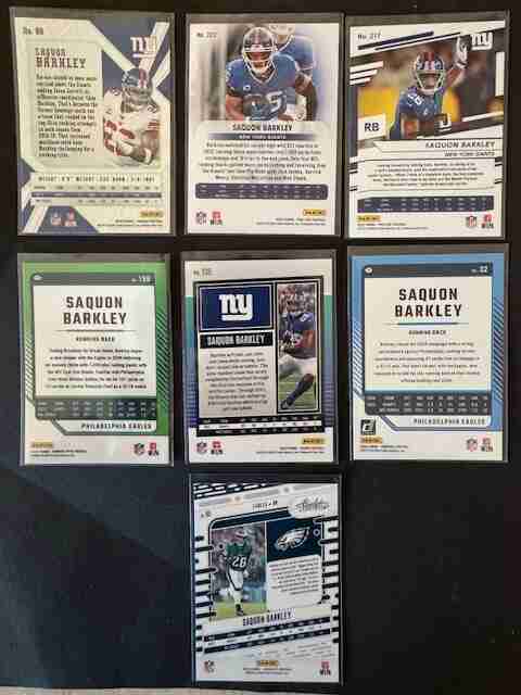 7-card SAQUON BARKLEY Lot: Giants/Eagles-Fire Burst, Optic