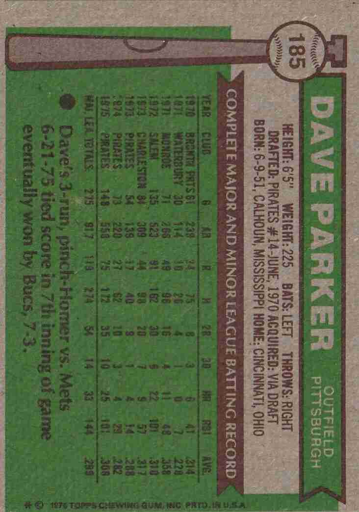 1976 Topps #185 Dave Parker Pirates