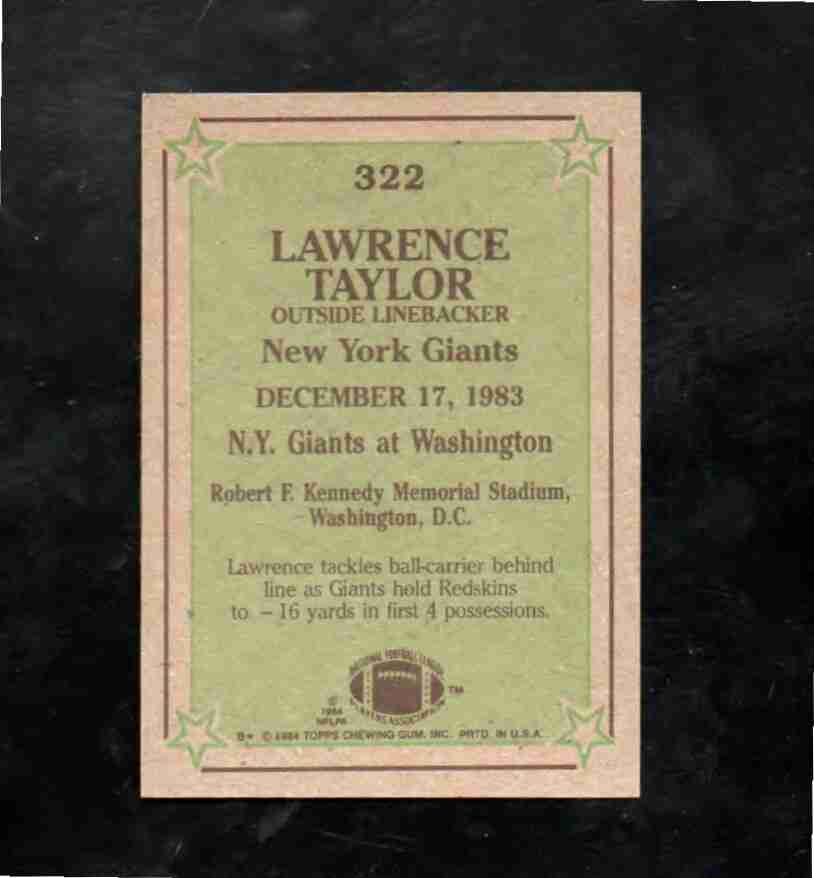 1984 Topps # 322 LAWRENCE TAYLOR NY Giants
