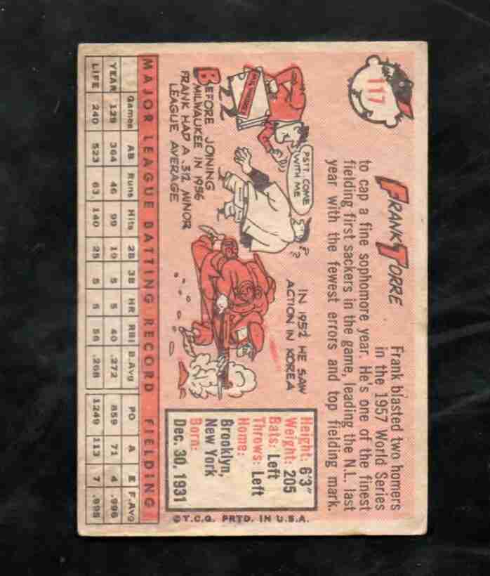 1958 Topps # 117 FRANK TORRE Milwaukee Braves