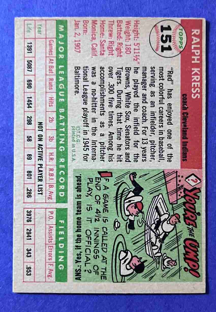 55 Topps RED KRESS Semi-Hi #151 +++