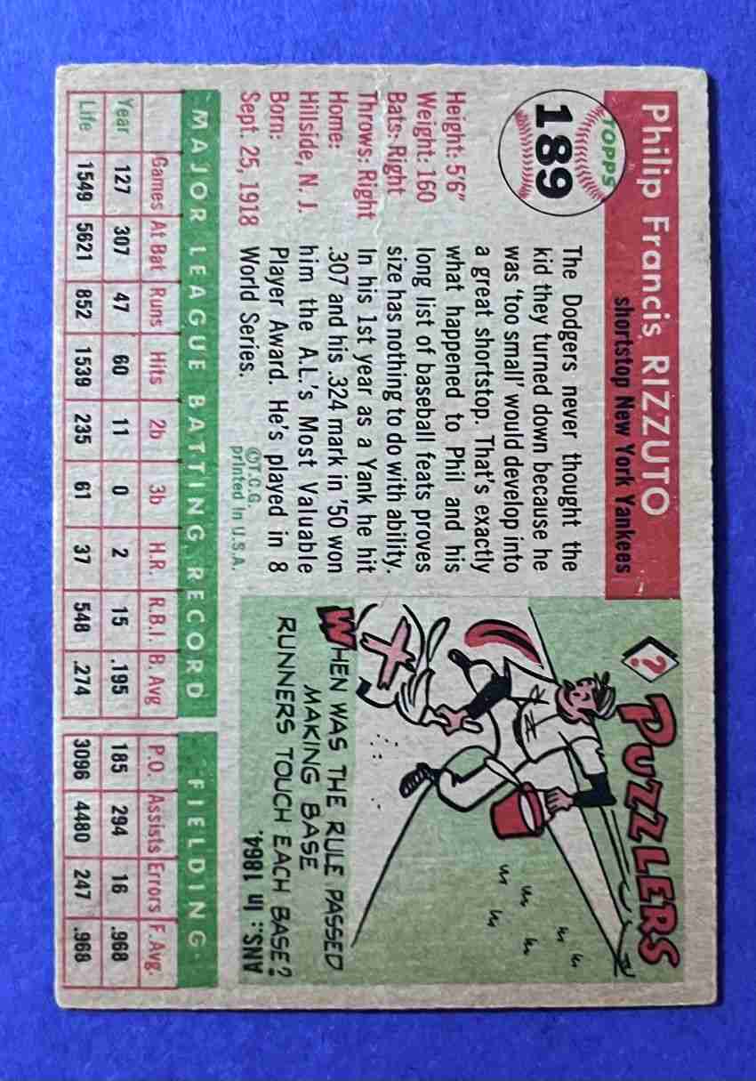 55 Topps PHIL RIZZUTO Hi #189 HOF!