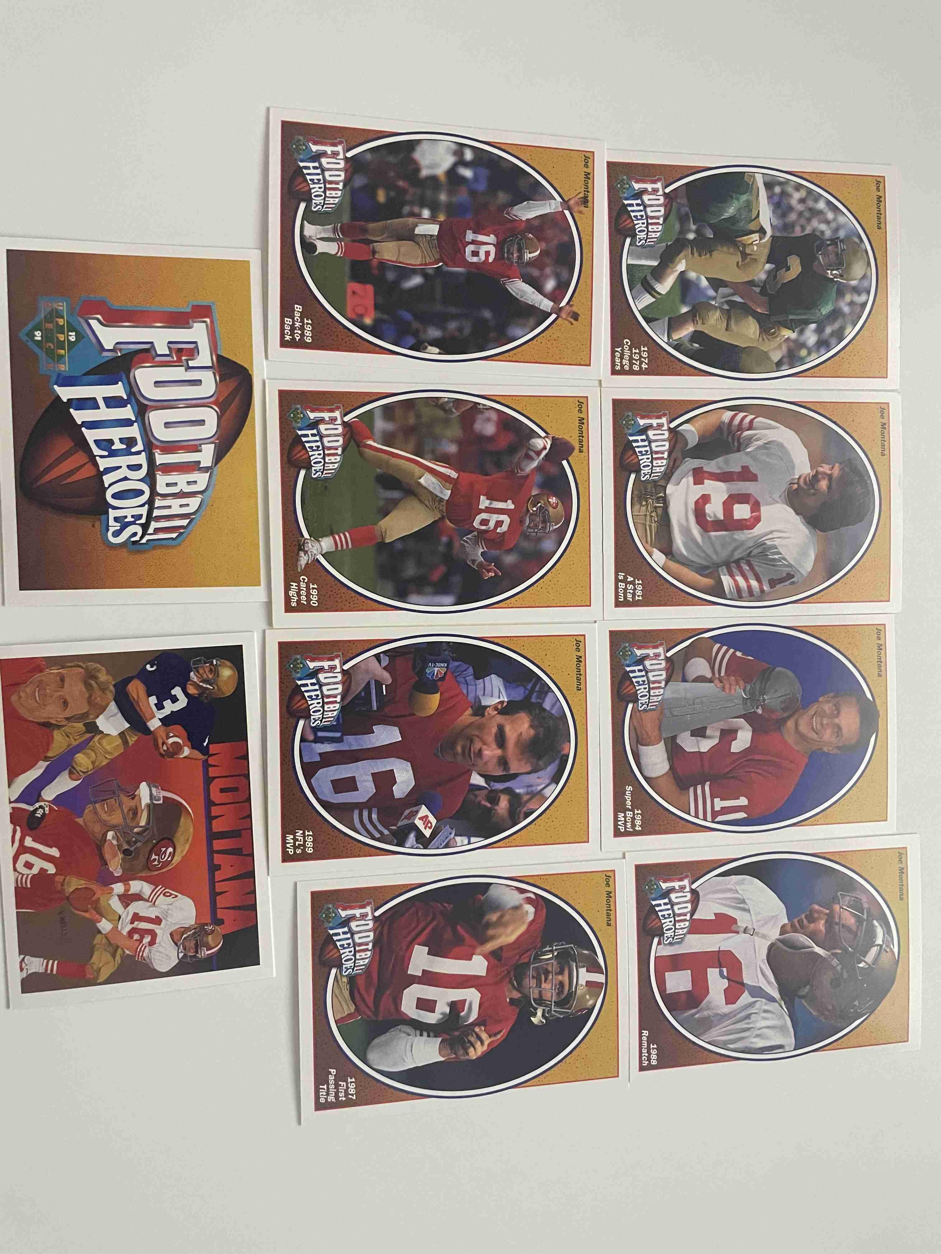 1991 Upper Deck Football Joe Montana Heroes Set 1-9