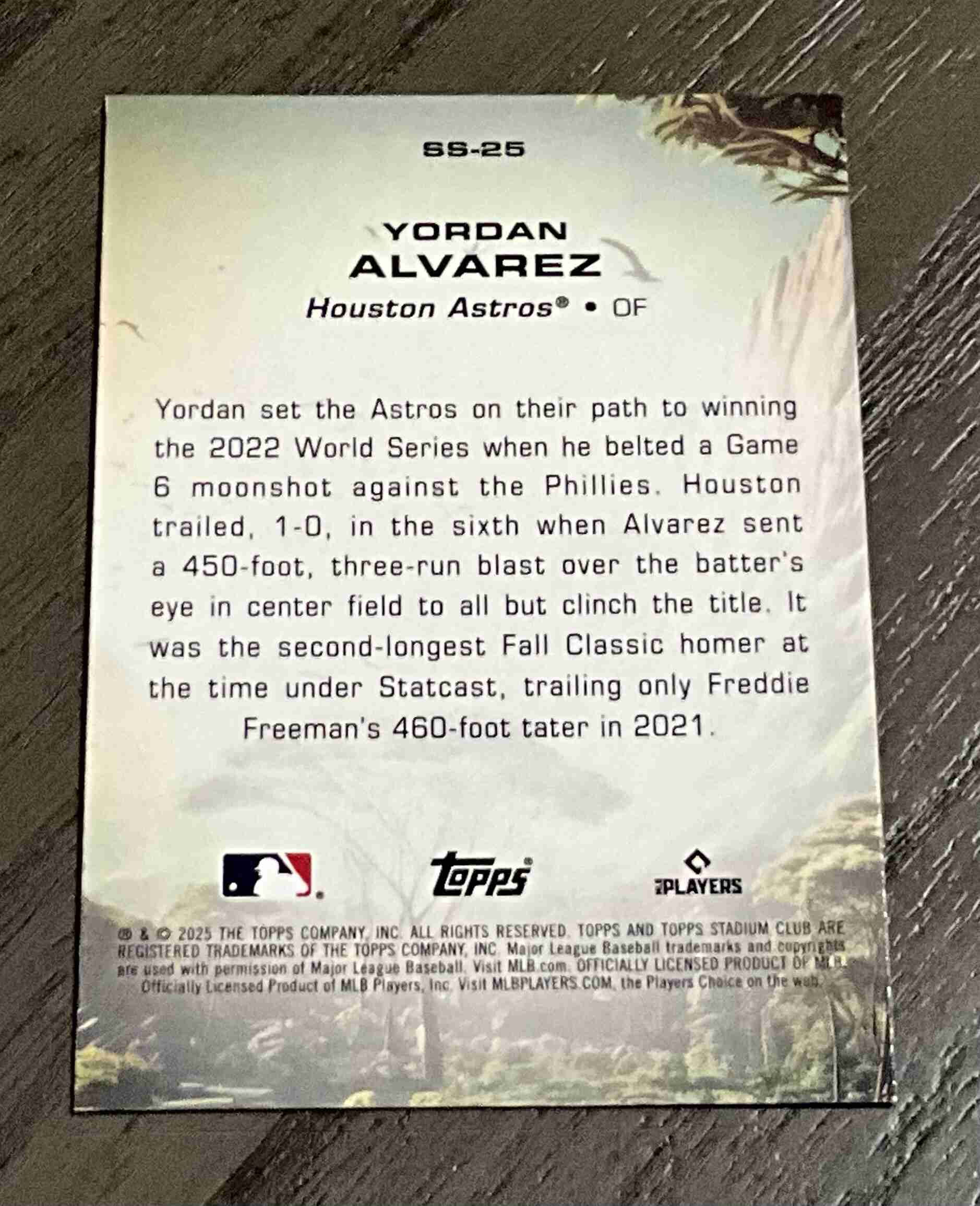 Yordan Alvarez Savage Sluggers 2025 Stadium Club Astros