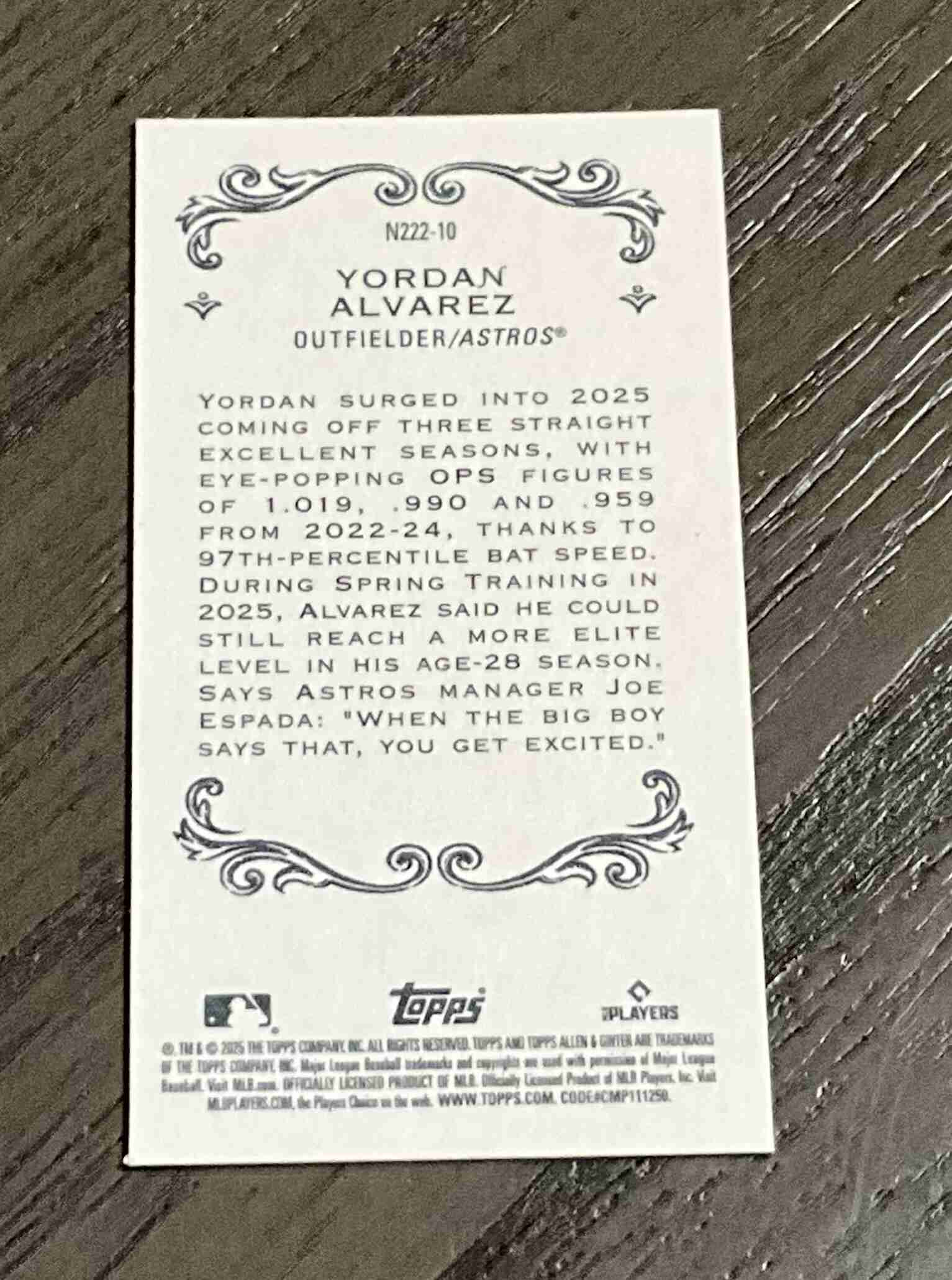 Yordan Alvarez 1889 Mini Variation 2025 Allen & Ginter