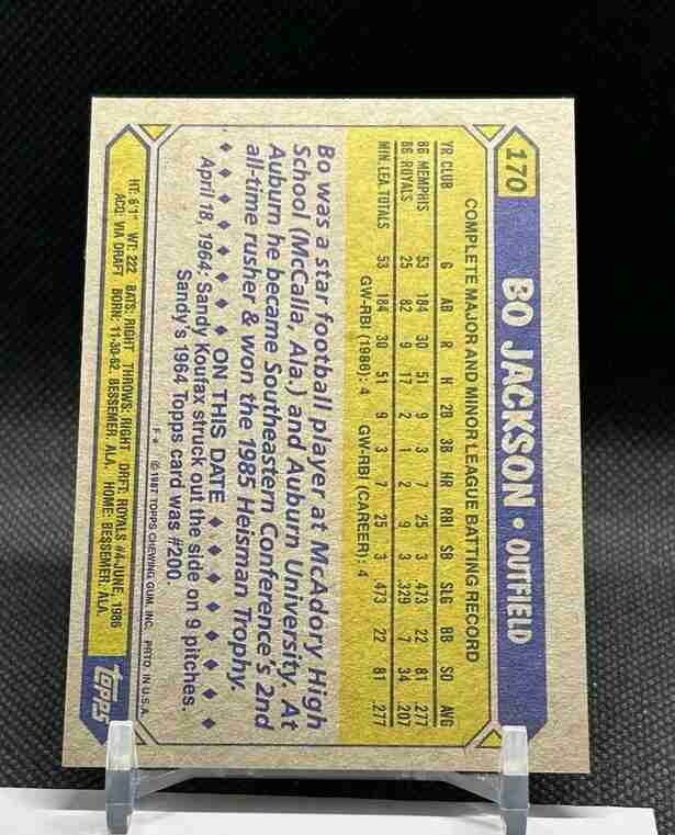 1987 Topps - Future Stars Bo Jackson #170 (Rookie Card) Baseball Card RC