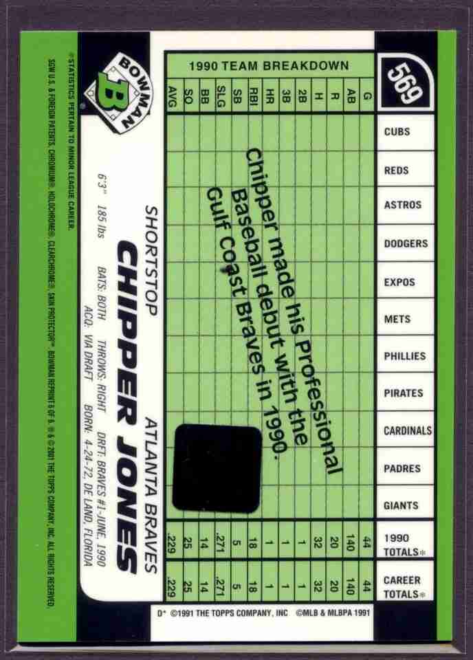 CHIPPER JONES 2001 Bowman #569 Relic 1991 Rookie Reprint
