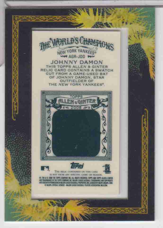 Johnny Damon Yankees Topps Allen & Ginter's Bat Card #AGR-JDD