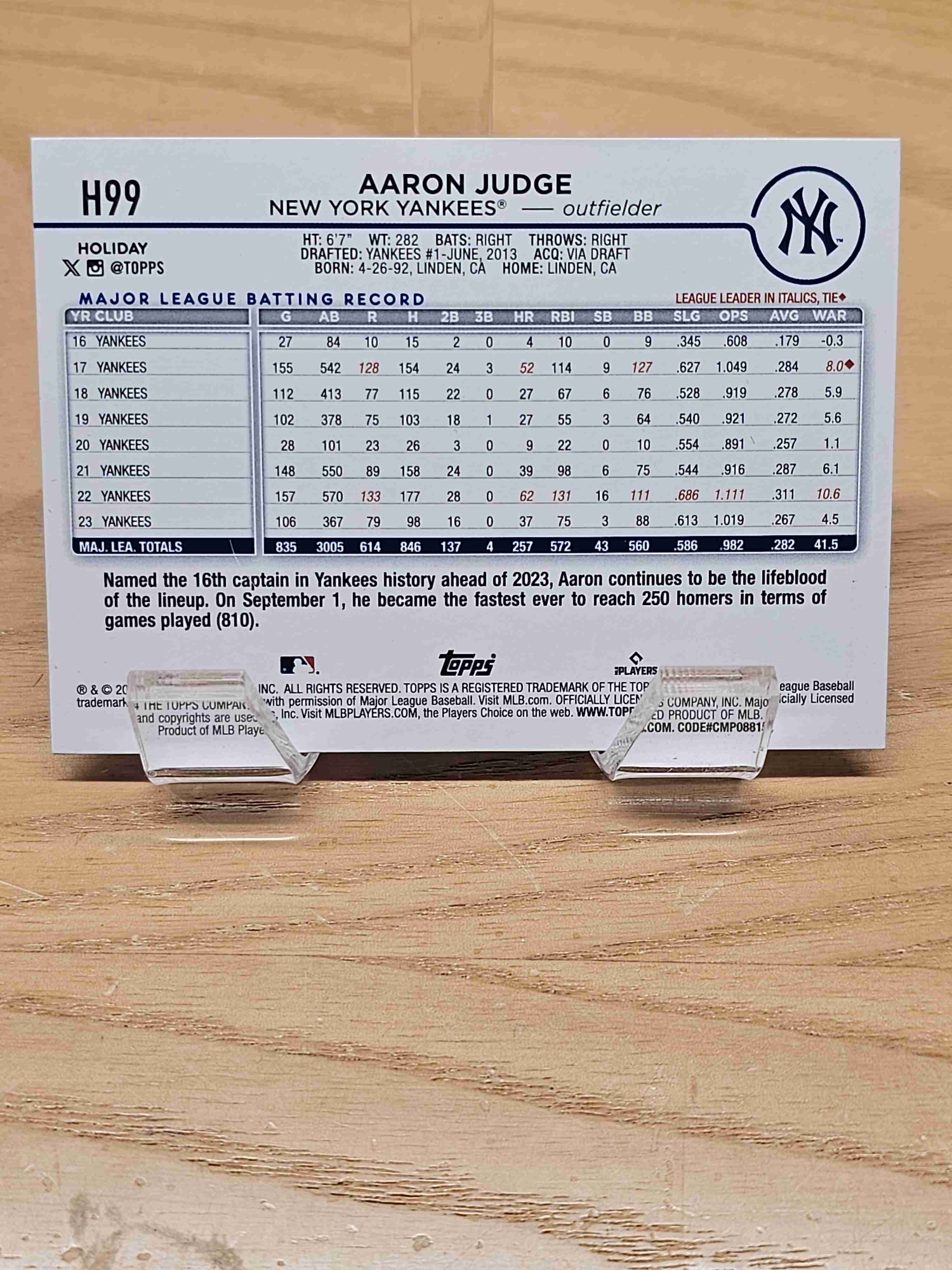 2024 Topps Holiday Aaron Judge With Santa Hat Yankees