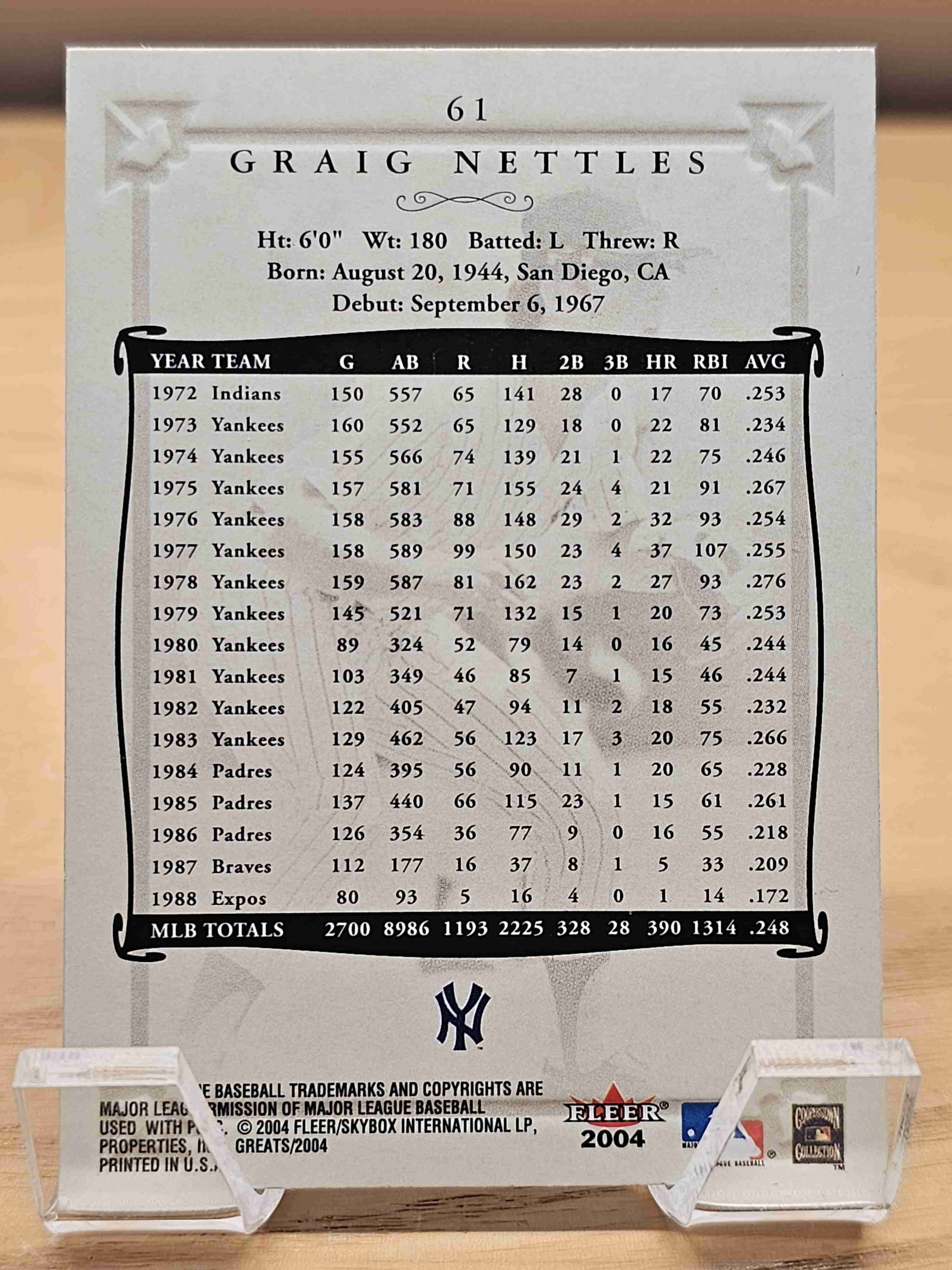 2004 Fleer Greats Of The Game Graig Nettles New York Yankees Card #61