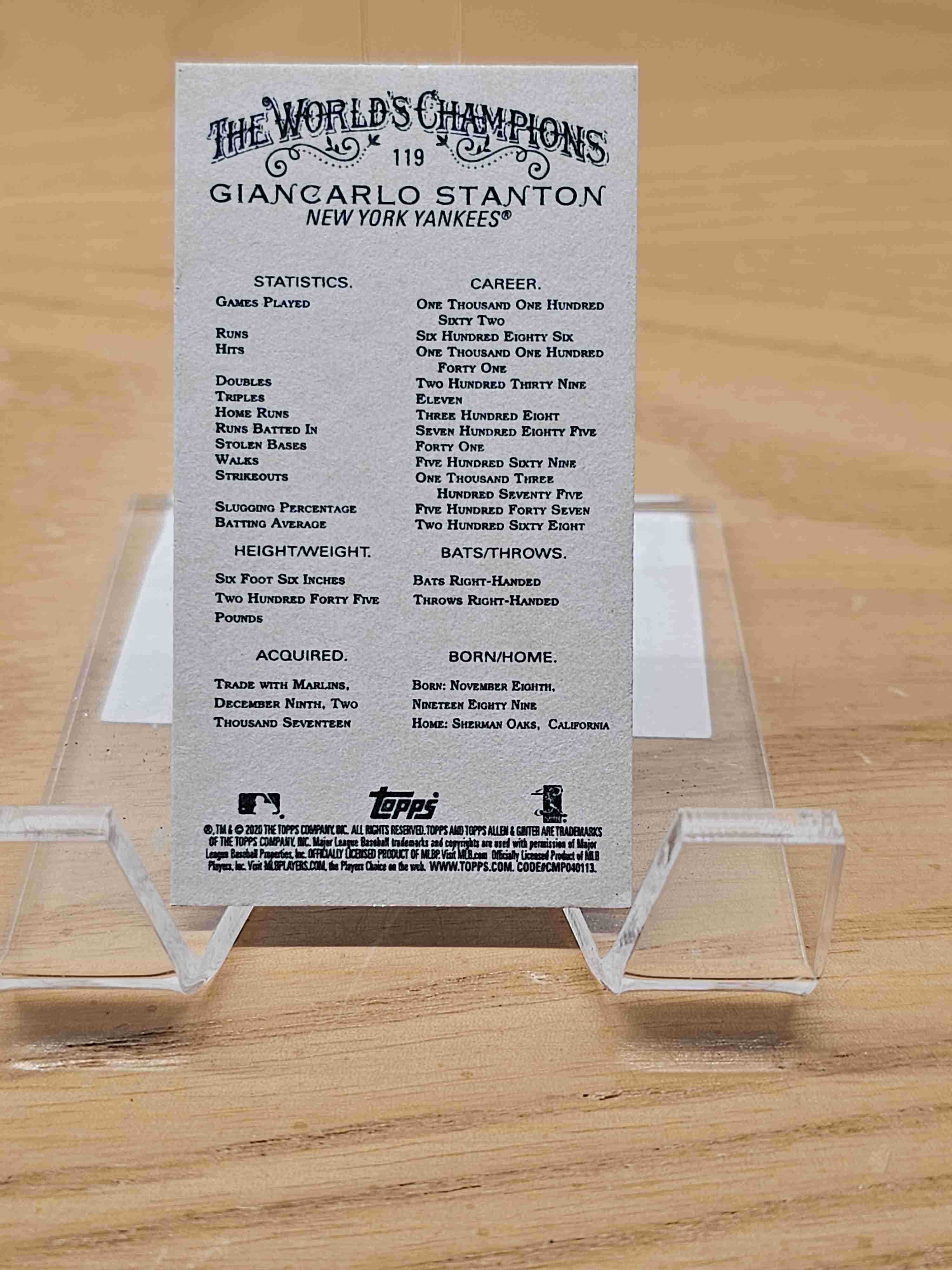2020 Topps Allen & Ginter Baseball Mini Black Border Giancarlo Stanton New York Yankees Card #119