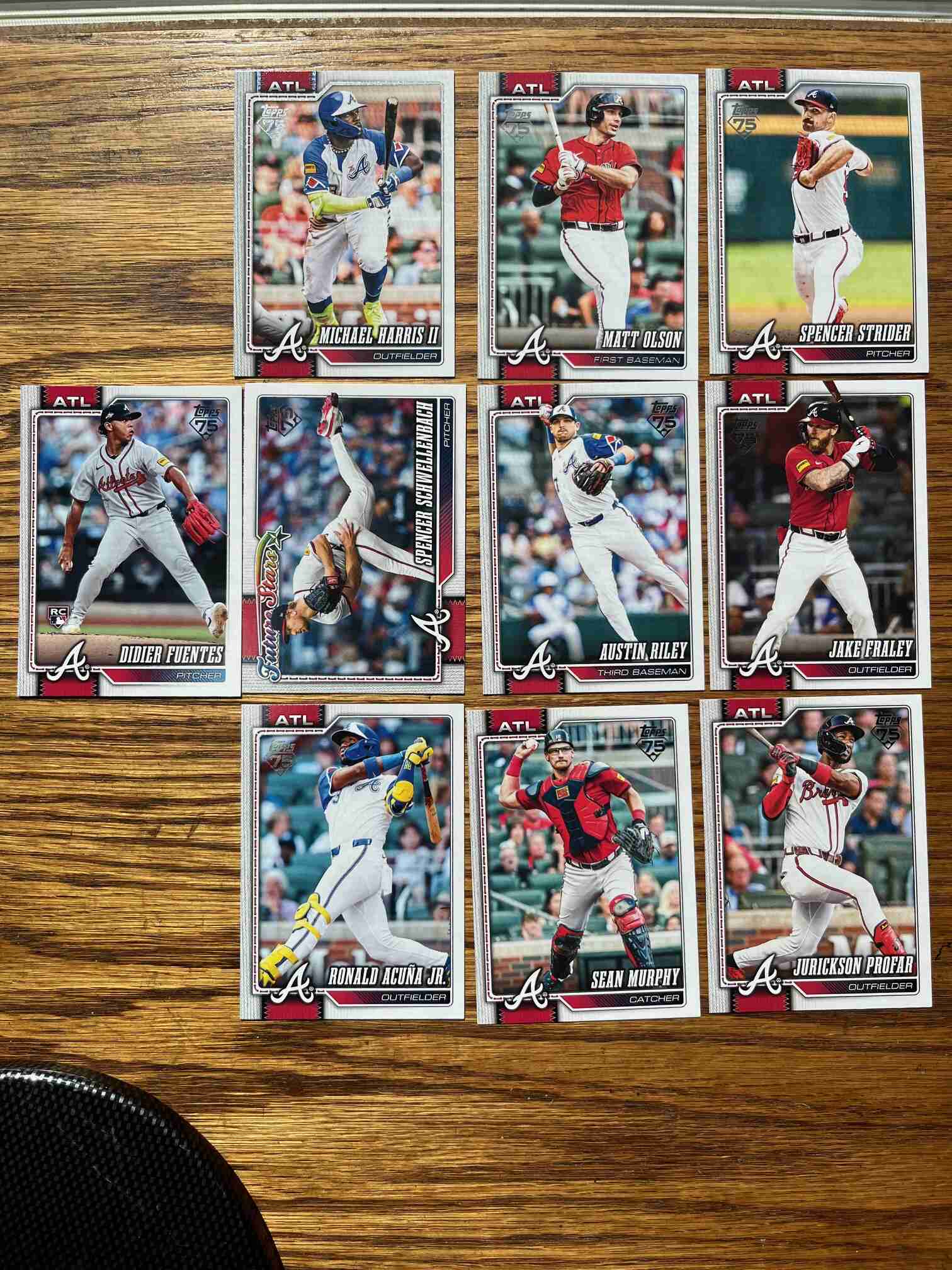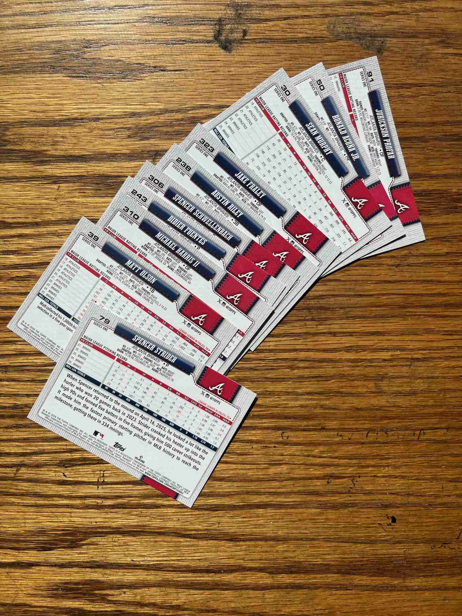 Lot of ten(10) Atlanta Braves cards from the new 2026 Topps Series One release. Includes no doubles- see photos for cards in lot and pack-fresh conditions. See other team lot auctions to combine shipping. Michael Harris II, Spencer Strider, Ronald Acuna Jr etc.