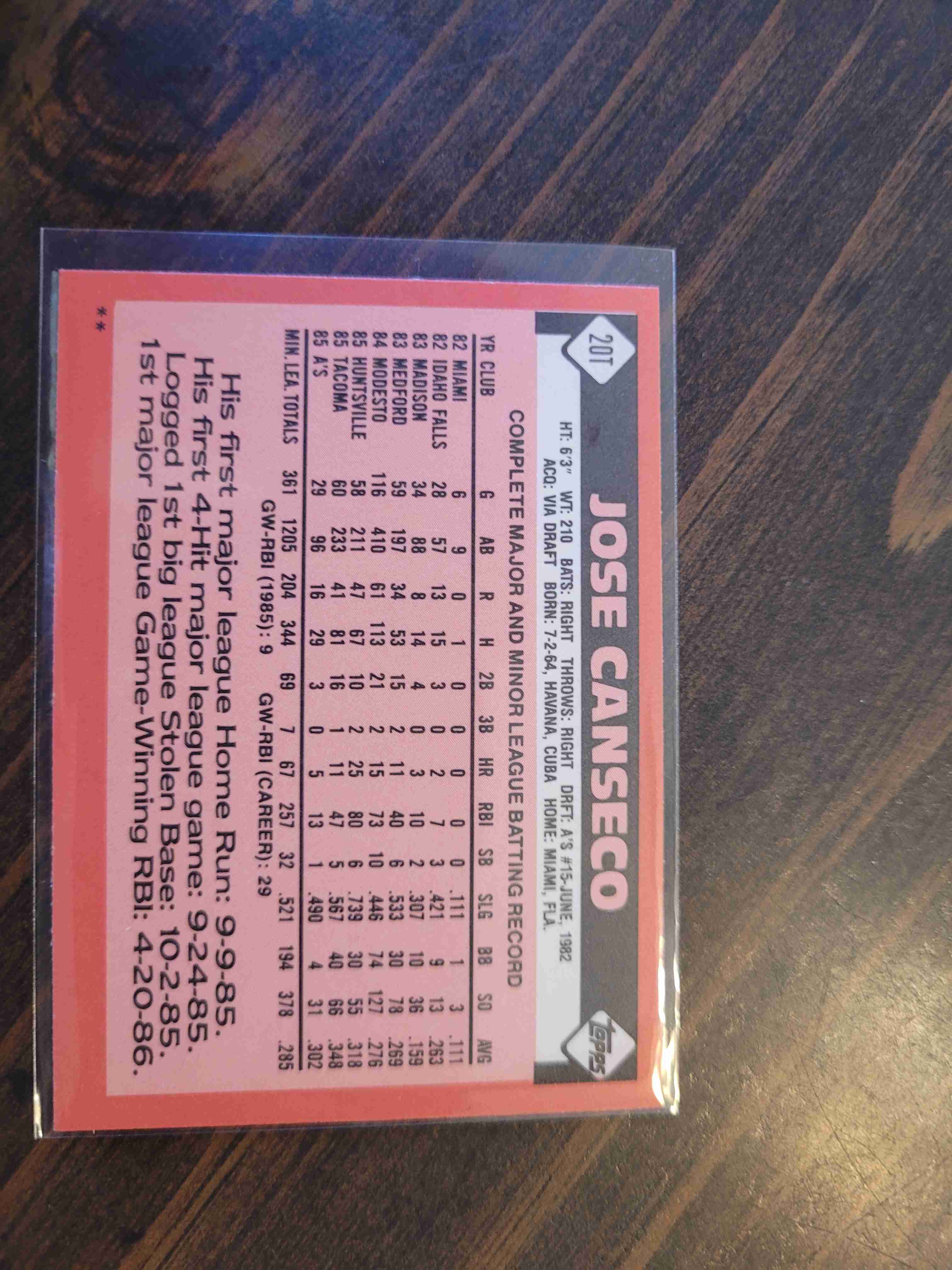 1986 TOPPS TRADED JOSE CANSECO #20T ROOKIE