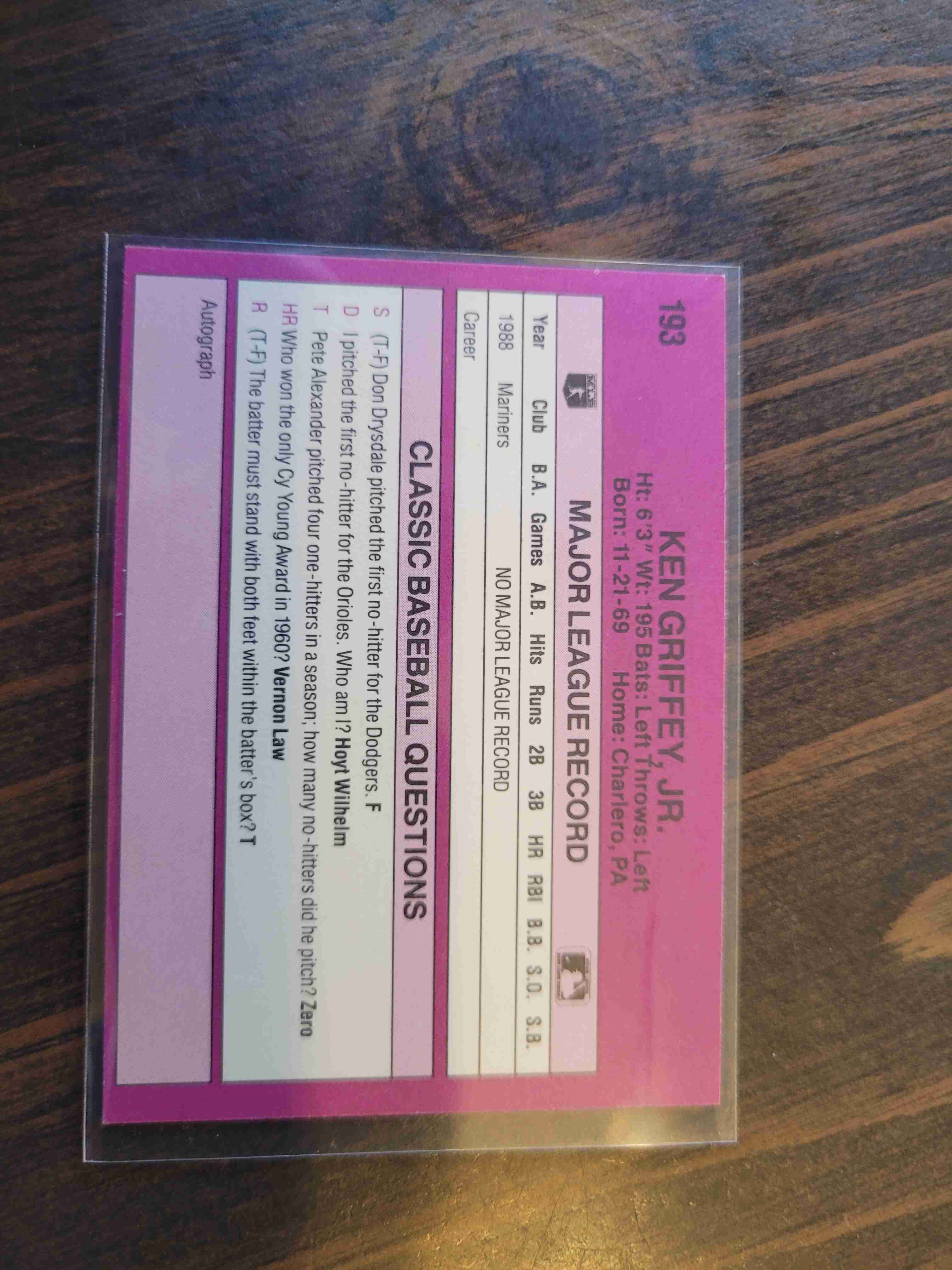 1989 CLASSIC KEN GRIFFEY JR #193 ROOKIE