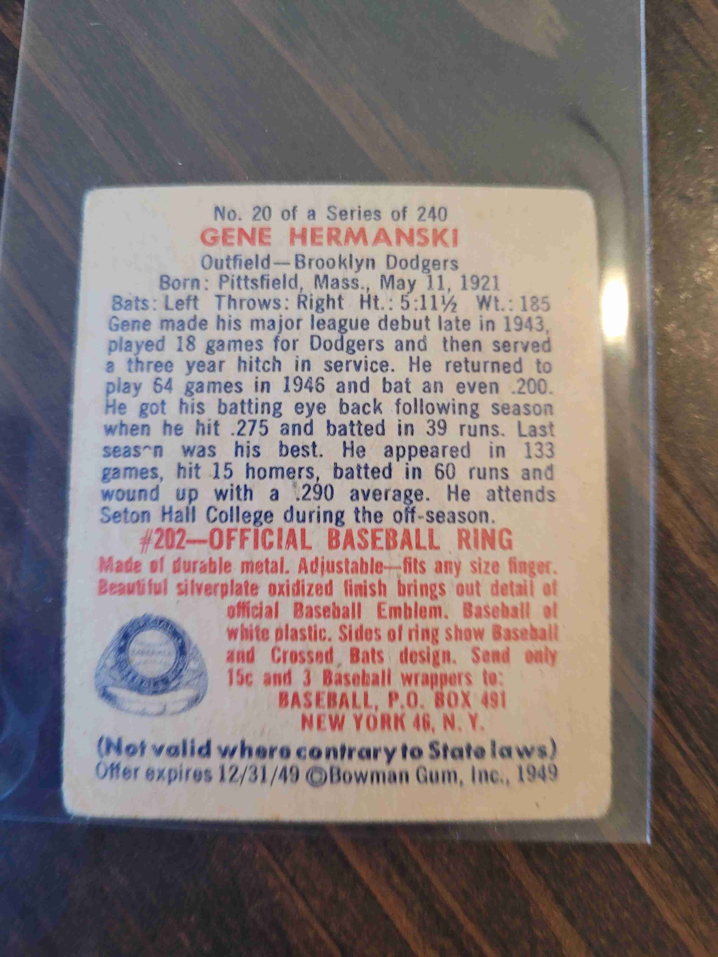 1949 BOWMAN GENE HERMANSKI #20 BROOKLYN DODGERS