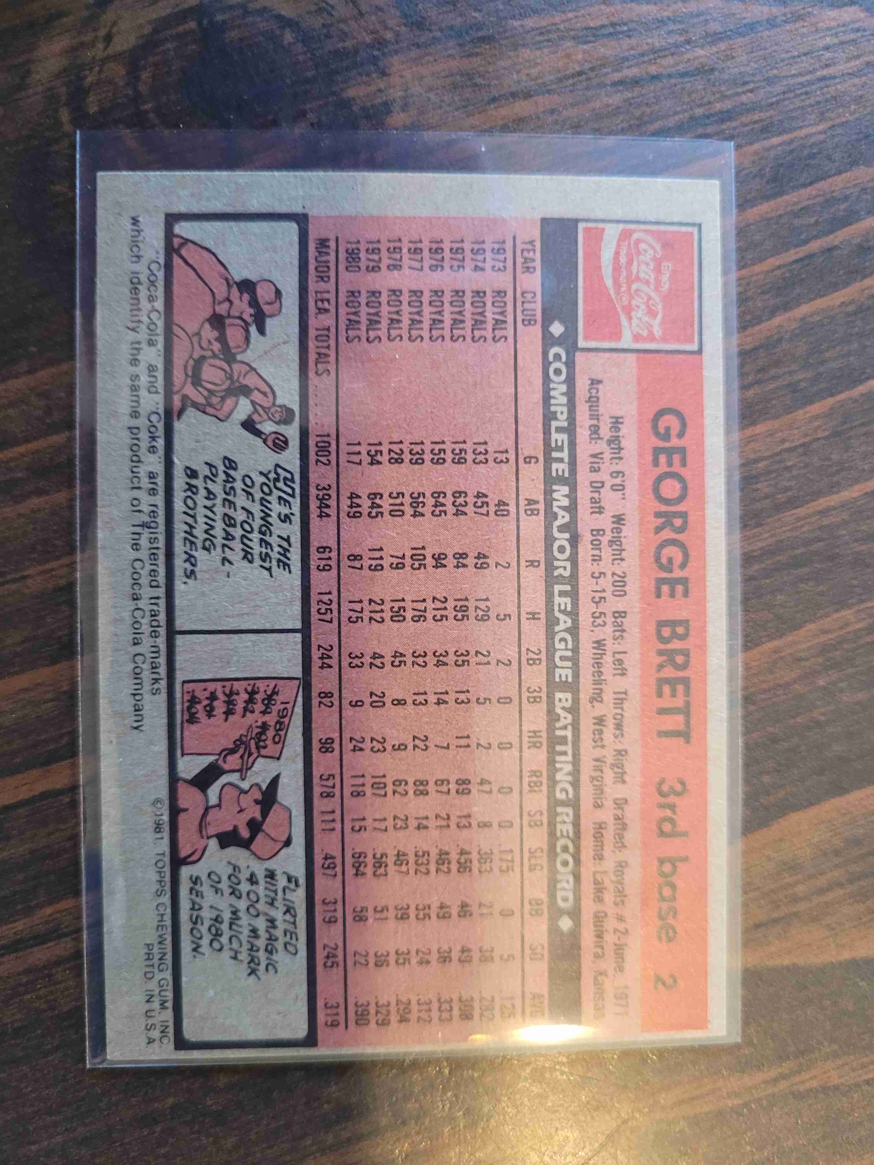 1981 TOPPS COCA-COLA GEORGE BRETT #2