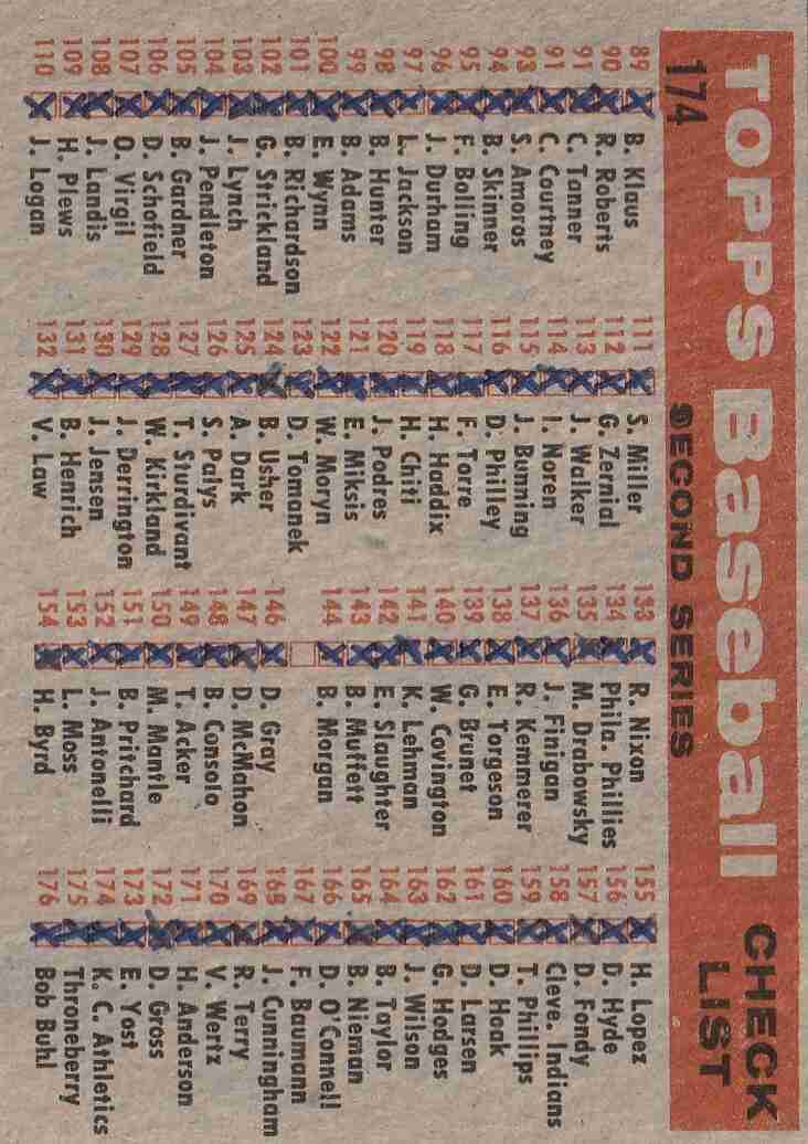 1958 Topps #174 K.C. Athletics TC/Checklist