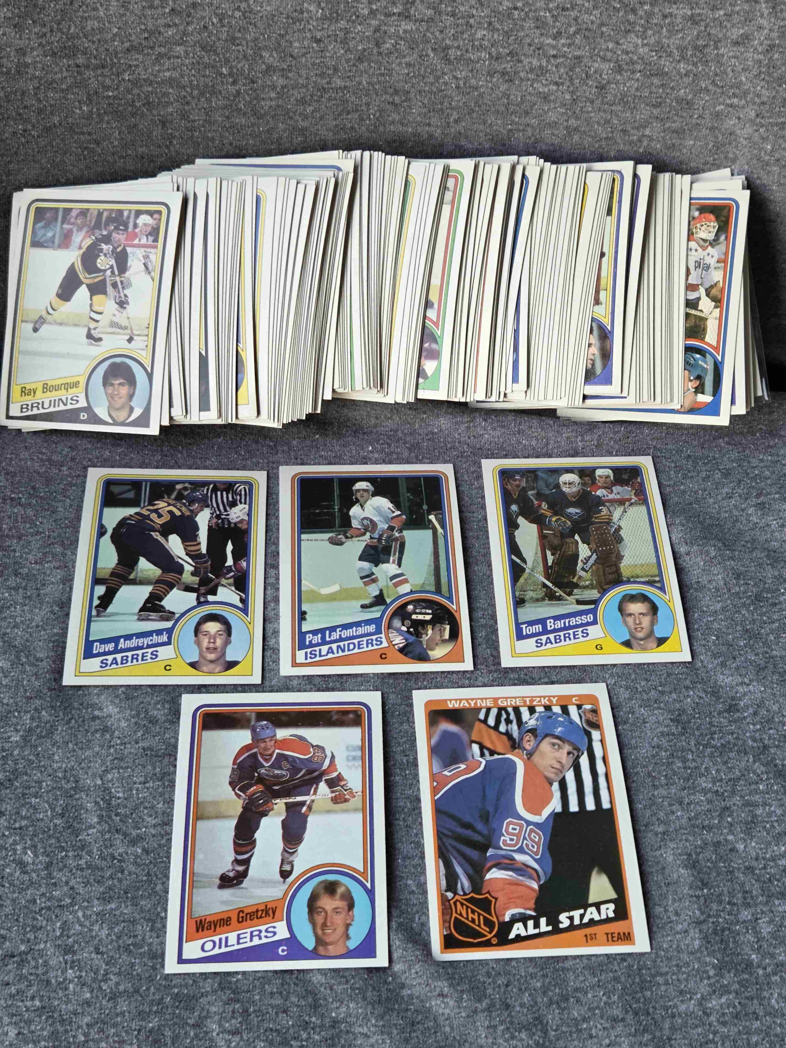 Time to thin out some sets from my collection! Keep watching Sportlots auctions as I’ll be putting sets up for bid each week – different sports, different years, different price points – in other words, something for everyone. ... This time it's the 1984-85 Topps hockey set (165 cards, hand-collated, NM) which marked the company's return to hockey after a 2-year hiatus. ... Yzerman is the prized RC, but don't overlook RCs from fellow HOFers Andreychuk, Barrasso and LaFontaine. ... Top stars include Gretzky, Bourque, Messier, Trottier, Potvin, Coffey and Kurri (each of whom has 2 cards). ... 46/165 cards are HOFers, and 65 are printed in lesser quantities. ... Quick and secure shipping (from USA) from a veteran Sportlots seller with 100% positive feedback. Good luck bidding!