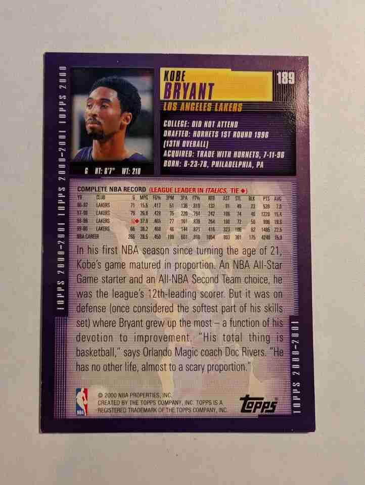 2000-01 Topps Kobe Bryant # 189