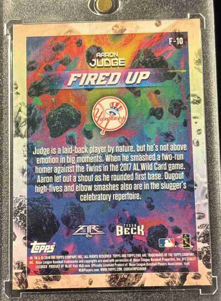 2018 Topps Fire - Fired Up Aaron Judge #F-10 Blue Chip NY Yankees