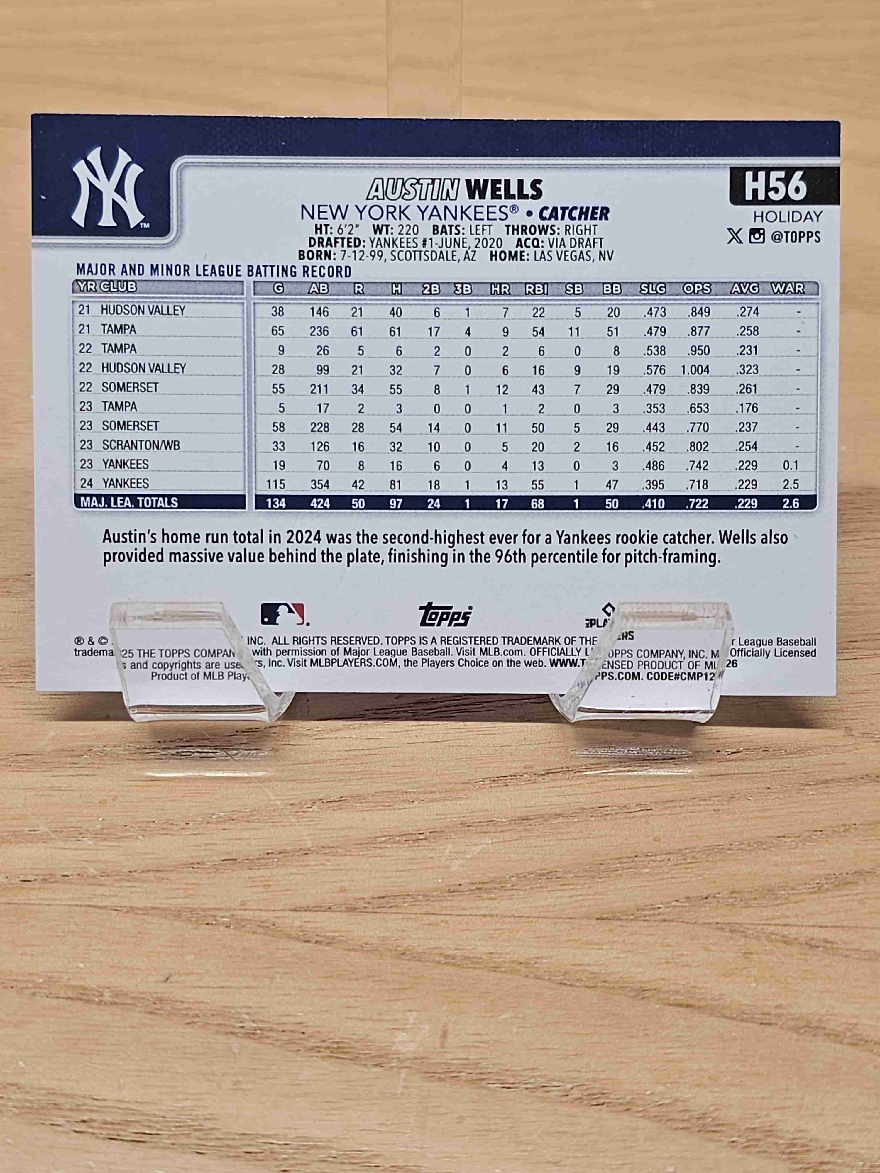 2025 Topps Holiday Austin Wells Rookie Cup Yankees #H56