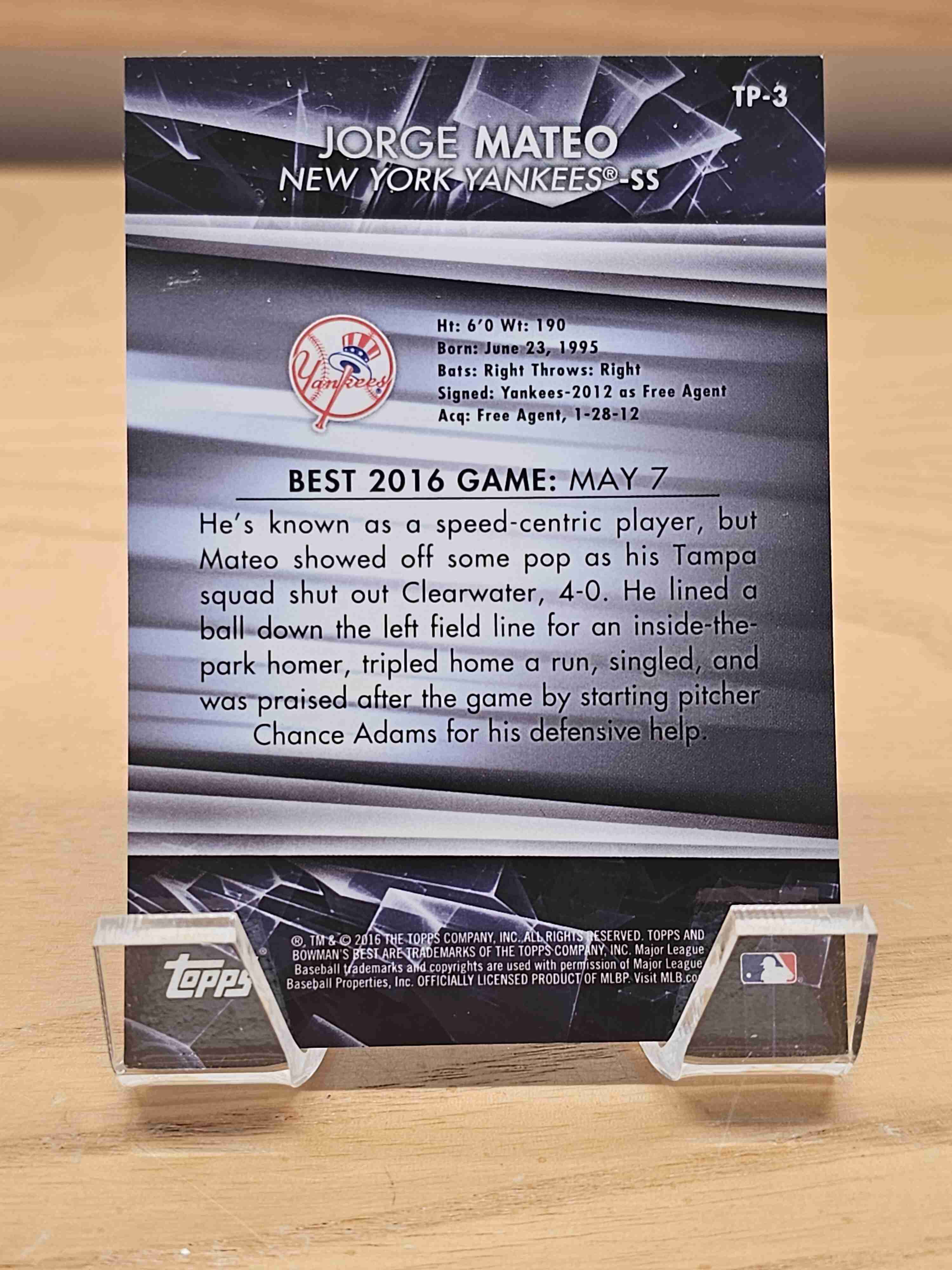 2016 Bowman's Best Top Prospect Blue Refractor /250 Jorge Mateo New York Yankees Card #TP-3