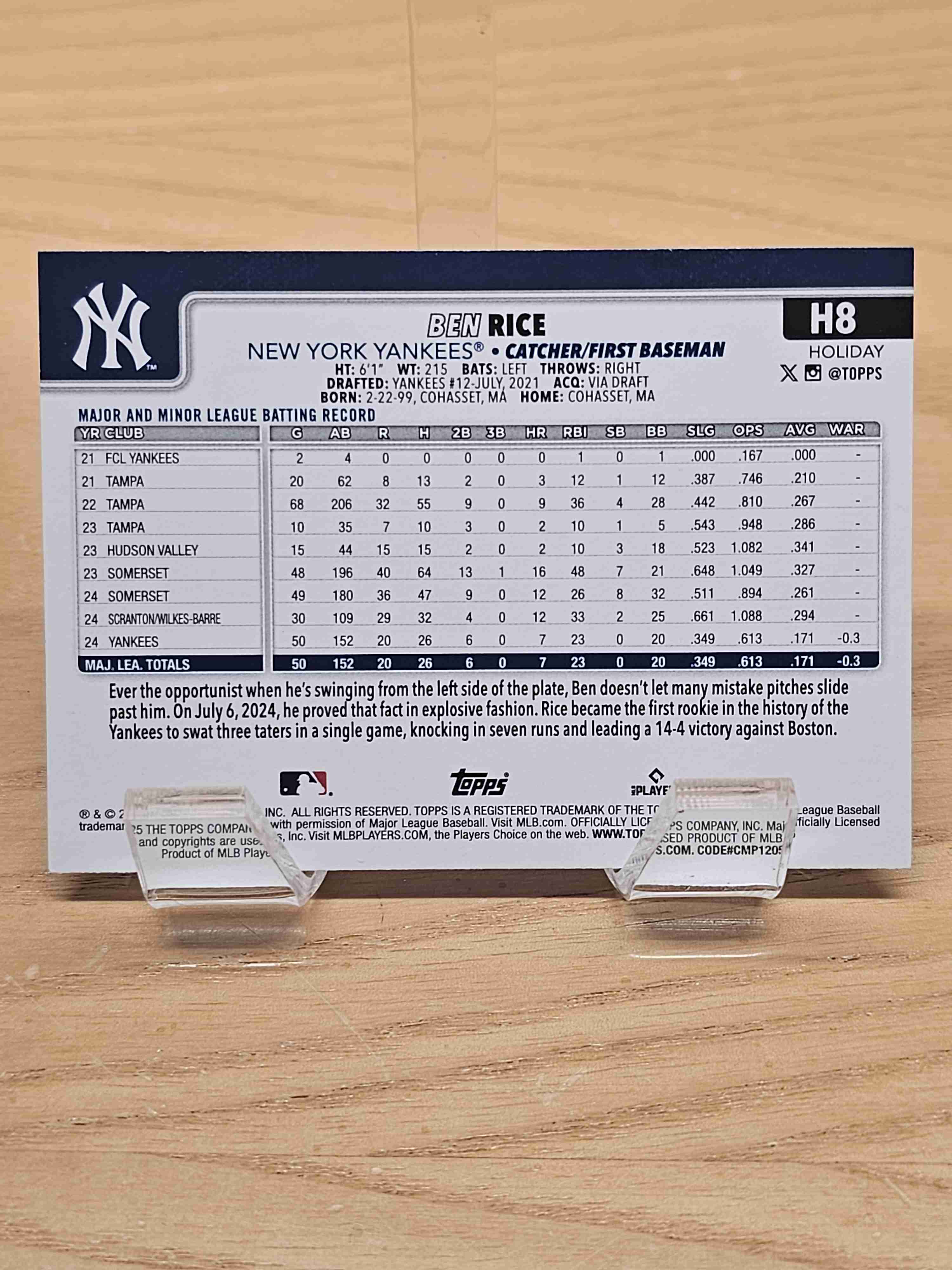 2025 Topps Holiday Baseball Rookie RC Ben Rice New York Yankees Card #H8